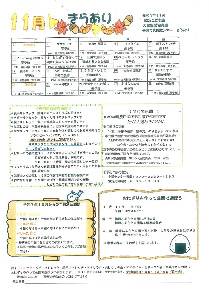 11月の予定表