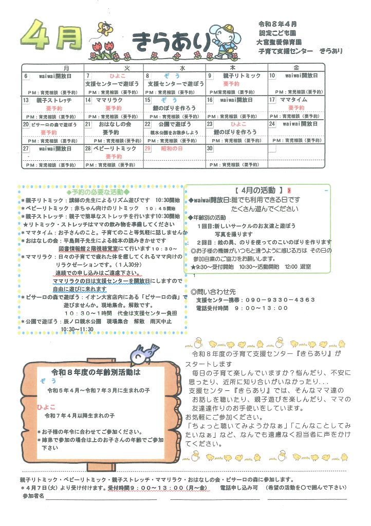 4月の予定表