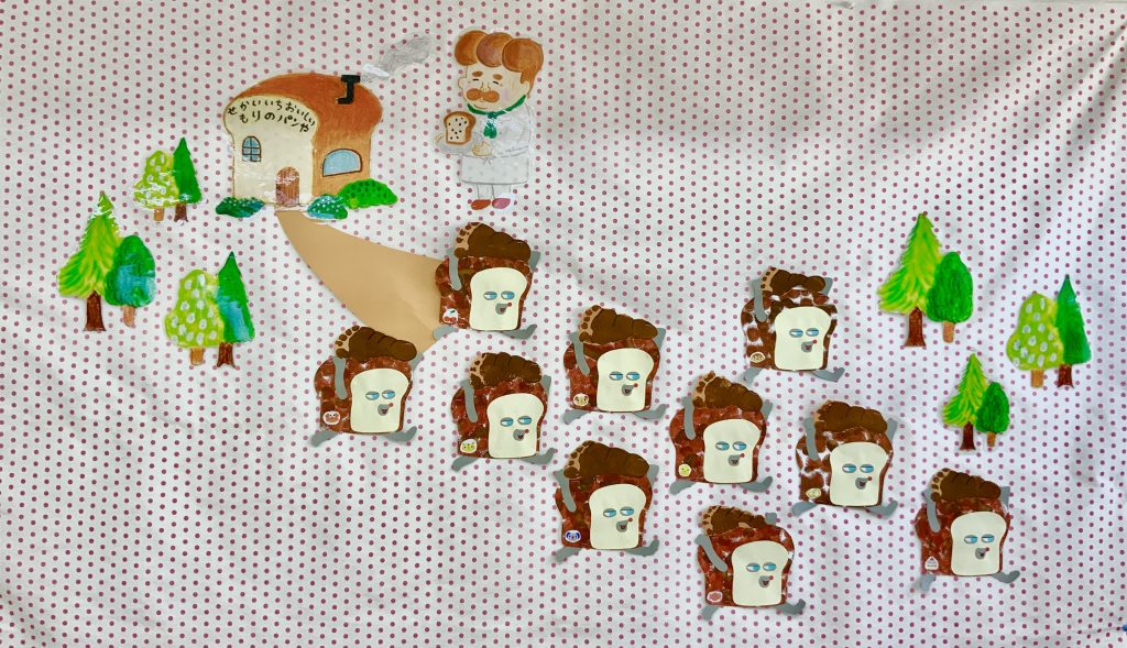 すずらん組はパン泥棒の製作を行いました.子供たちが大好きな絵本パン泥棒🍞ちょっと顔が不気味な食パン完成です.運動場では、もも組のお兄さん・お姉さんと合流して刺激をもらっています.