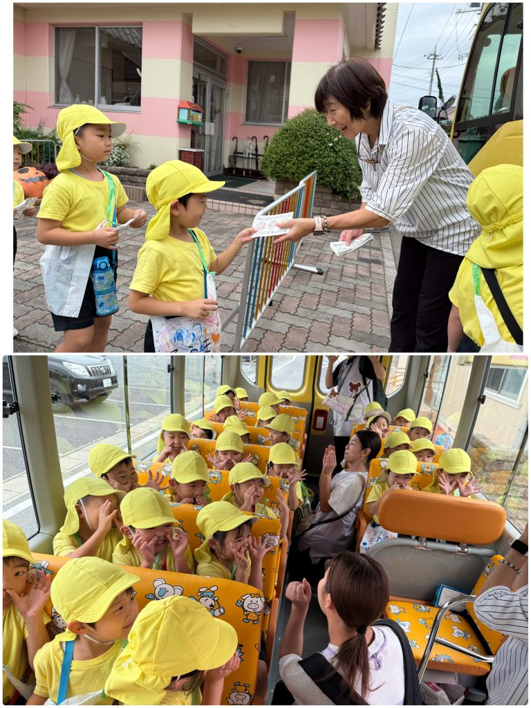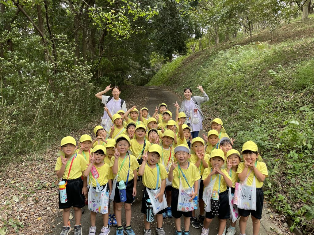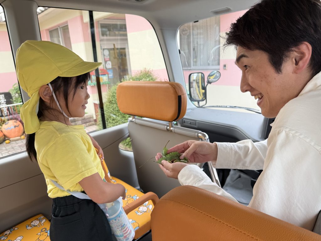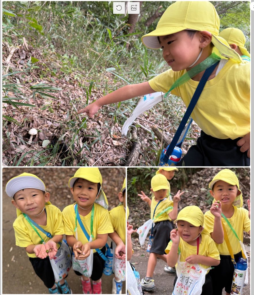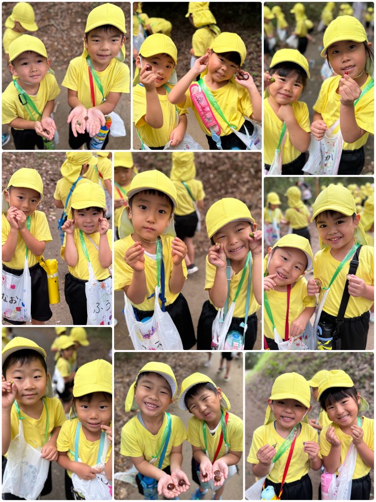 先週の木曜日たんぽぽ組はバスでやすらぎの里に行きました。作った袋を持って、どんぐり集めです。集めたどんぐりで何ができるのか楽しみだね、たくさん歩いて水分補給もしておやつも食べて、楽しく過ごしました。バス運転の暁哉先生に「お土産だよ」とどんぐりを葉っぱに包んで渡しました。まるで「トトロの世界」‼️
