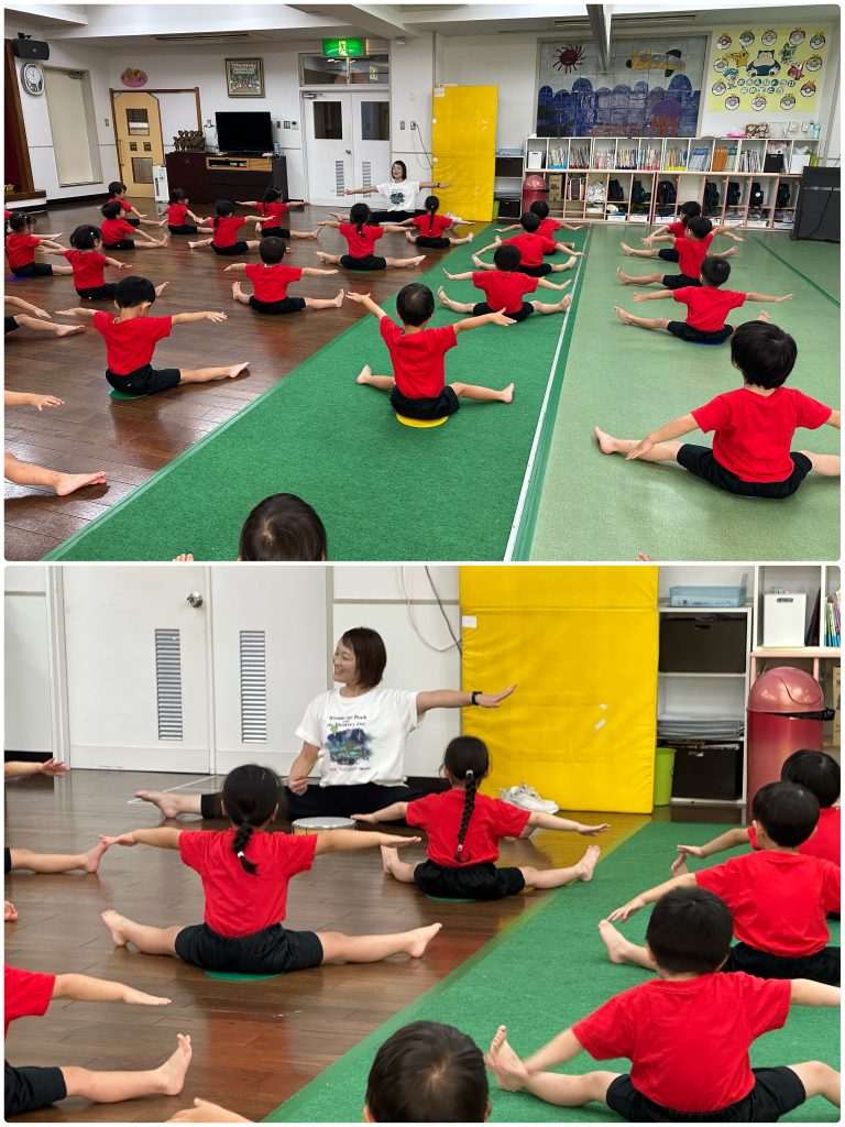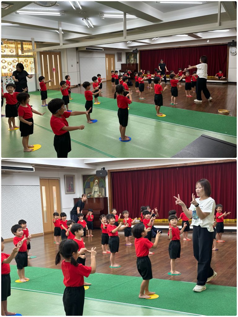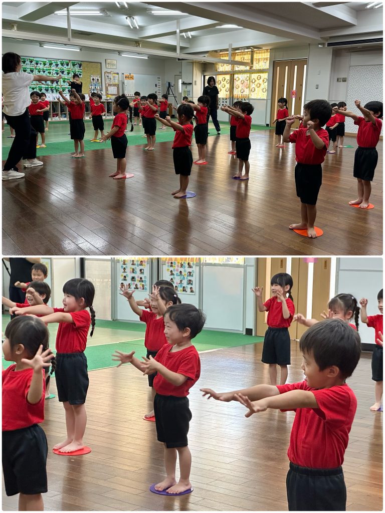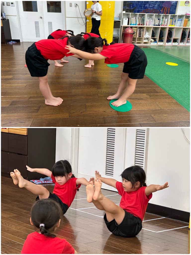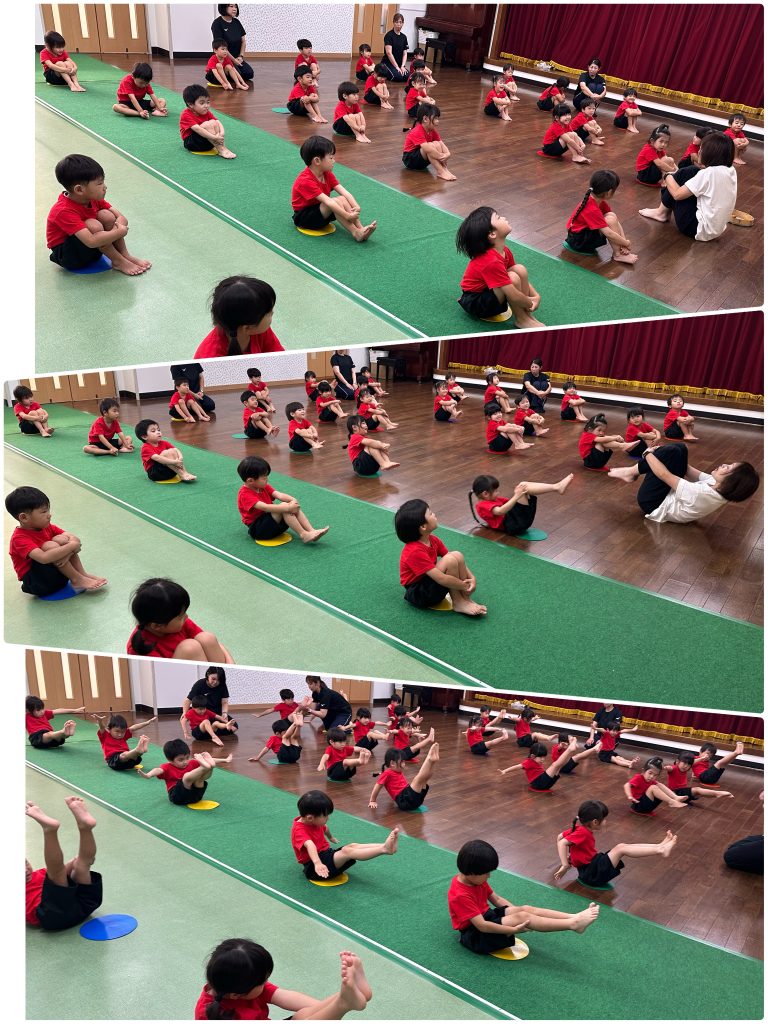 先日のアトムの日、ちゅうりっぷ組は愛先生と行いました。指の動き・手の運動を行いました、右手と左手違う動きはなかなか難しいです。膝を抱えて起き上がりこぶし・2人1組の足超えジャンプ、フープを持って動かしたり落としたりと器用さを養う動きを行いました。ちゅうりっぷ組はどんな動きもニッコニコで楽しく行いました。