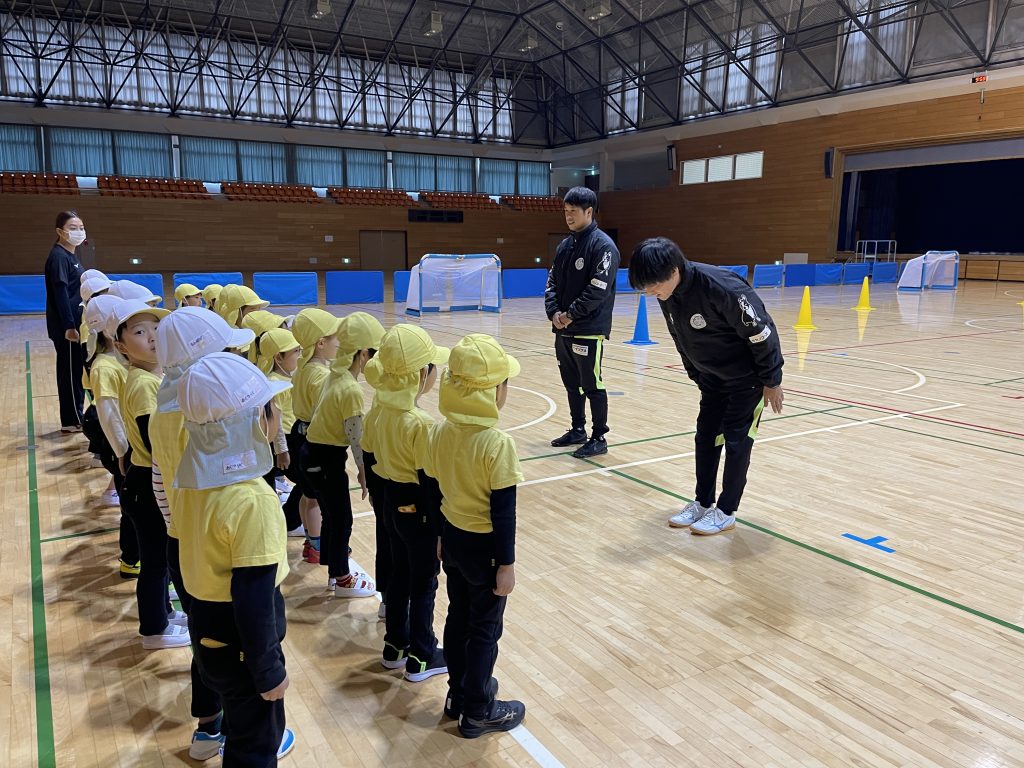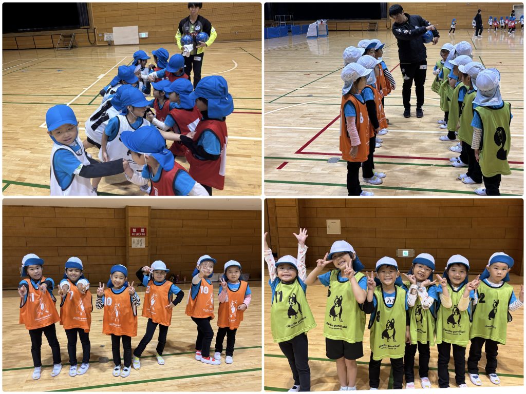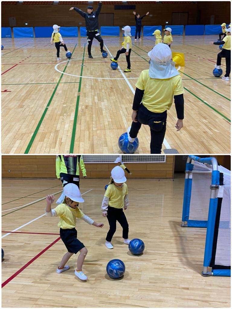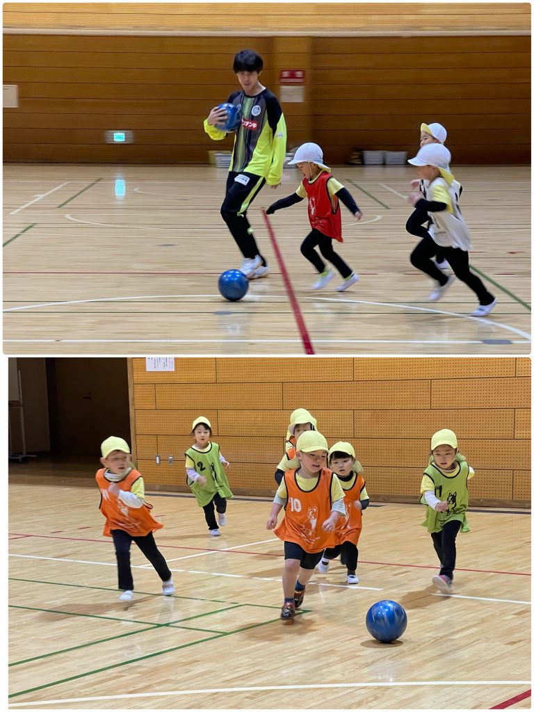今年度最後のサッカー教室です。初めは追いかけられたり、ボールに向かっていけなかった子供もいましたが、今ではルールを守ってどこに走って、体をどのように動かして動けば良いのかが理解できるようになり、ボールもコントロールできるようになりました。みんなコーチも大好きサッカーも大好きです。楽しいサッカー教室ありがとうございました。2月はちゅうりっぷ組がサッカー体験を行います。頑張ろうね