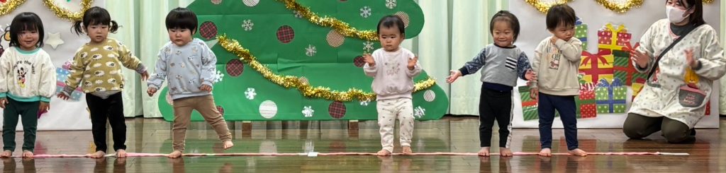 明日は未満児クラスのクリスマス発表会です。先生たちはドキドキです。練習では舞台で、泣かずに元気にお遊戯やオペレッタを行なっていますが、パパ・ママ・たくさんのお客さんの前でいつものように元気にできるのか・・・・心配しています。でも、たくさんの皆さんの前で衣装をつけて舞台にあがることだけでも、子供達の成長です、明日はお子さんの成長を確認していただけると嬉しく思います。1番小さいいすずらん組は明日は行いません、タンバリンを持って応援しています。みんながんばれーー📣