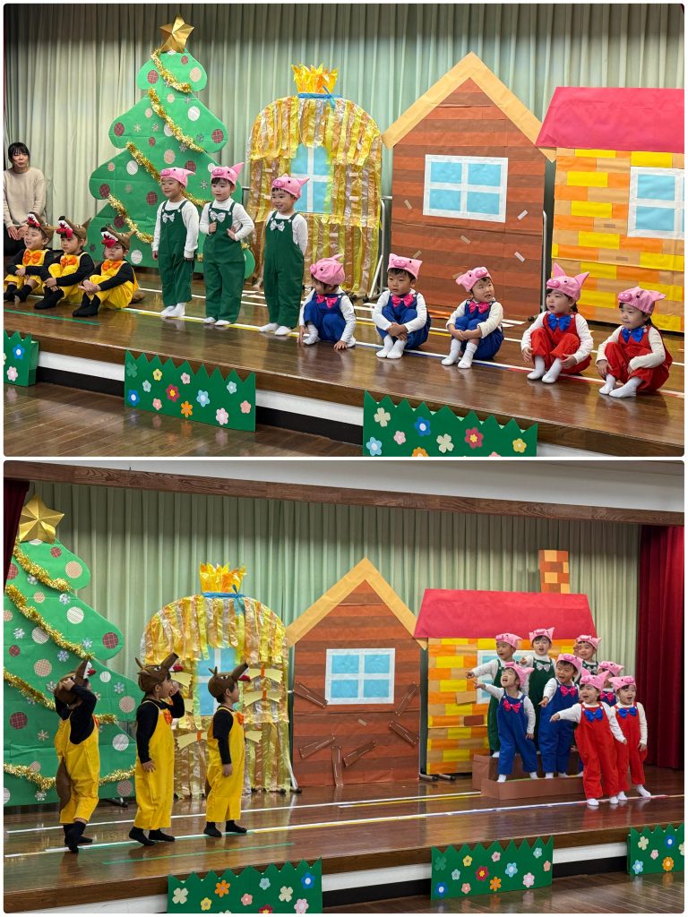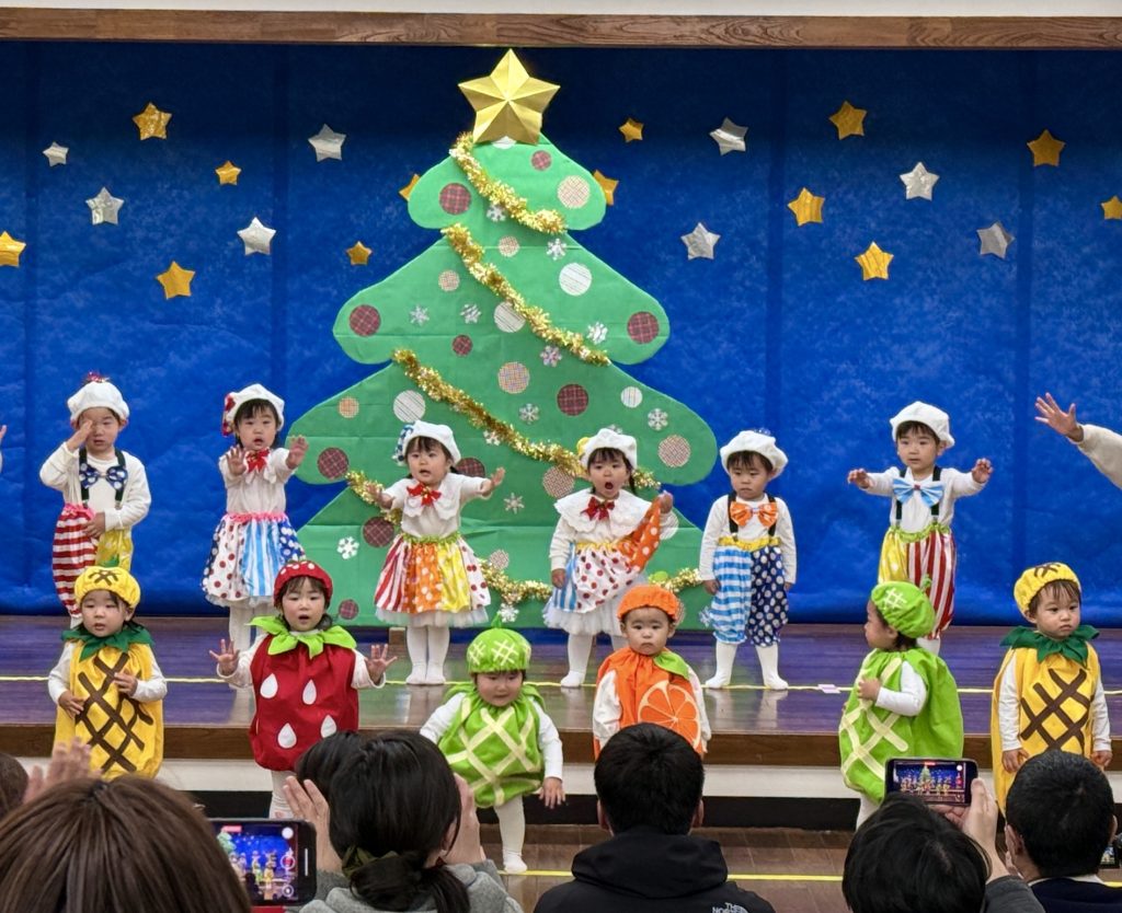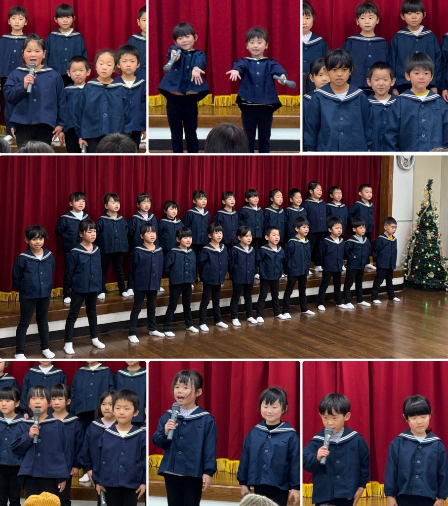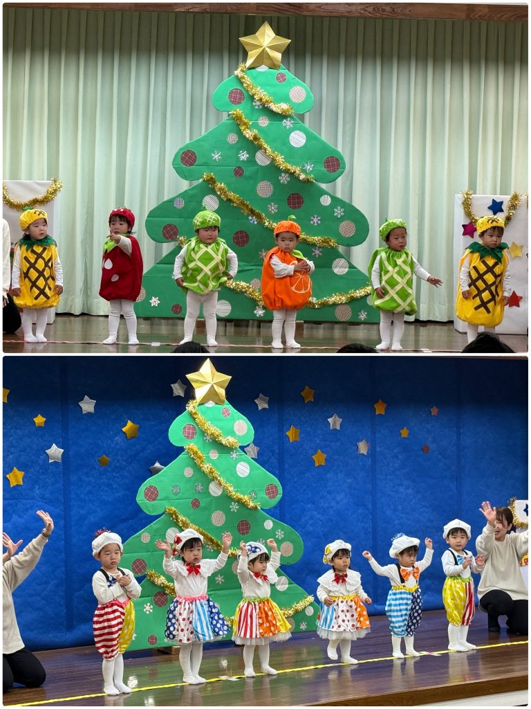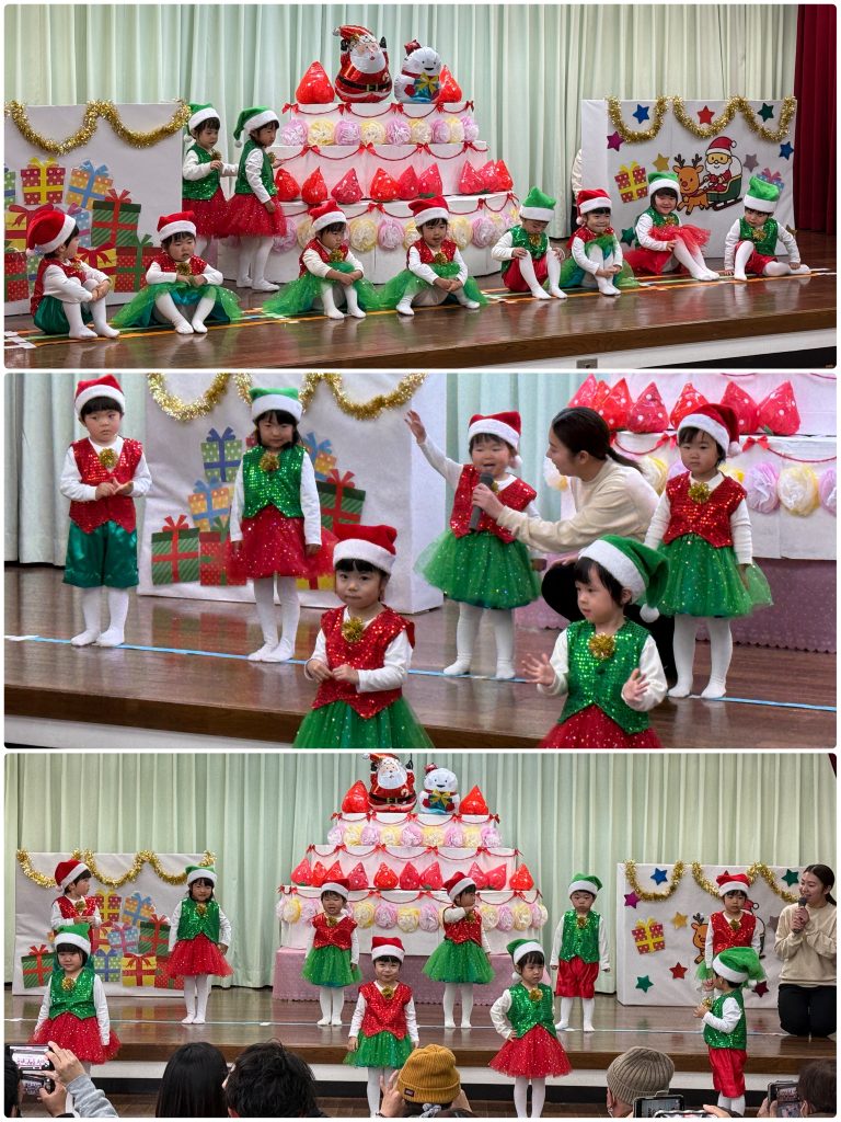 今日は未満児発表会です。オープニングはまつ組の歌・ご挨拶で始まりました。大きくなったらまつ組のように挨拶・歌・ピアノに合わせて姿勢を正して、動けるようになります。を見せてくれました。ばら組・ふじ組・もも組かわいい衣装を着て泣かずに舞台に立つことができました。パパ・ママからは「かわいいーー😍」と声があがり、保護者の皆さんがみんな優しい笑顔になっているのをみて、ほんとに子どもは天使だなー👼と痛感しました。本日はお忙しい中たくさんご参観をいただきありがとうございました。