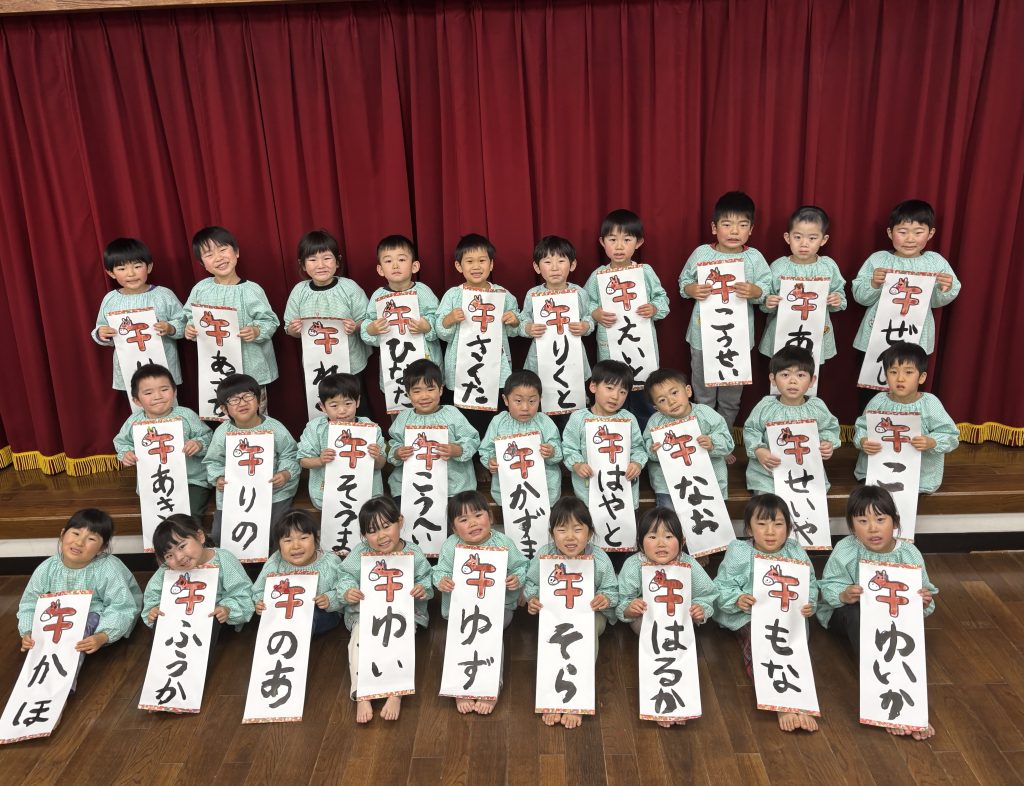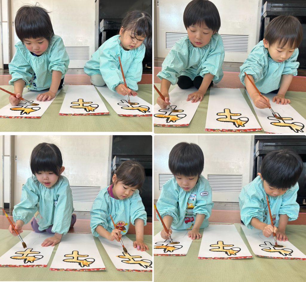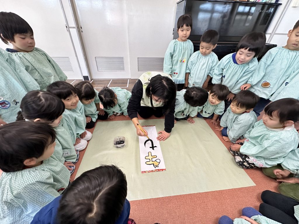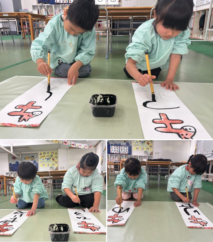 金曜日は書き初めを行いました。午年は茶色に塗り、筆で名前を書きました。心静かにゆっくりと丁寧に筆を運んで、名前を書き上げました。