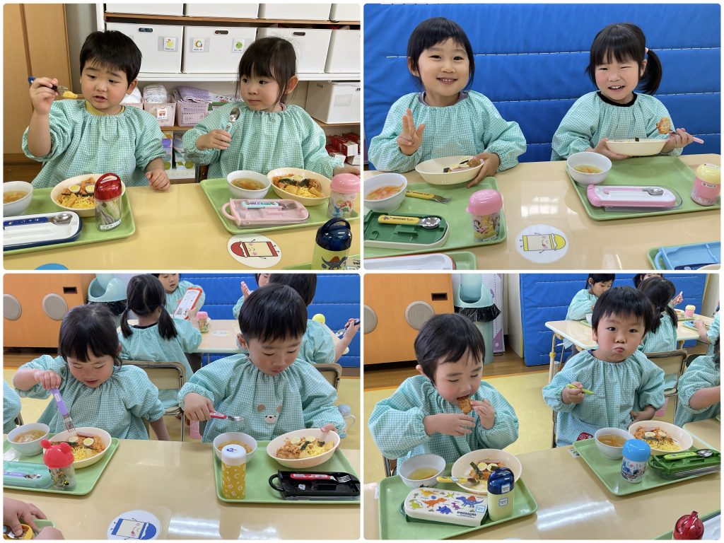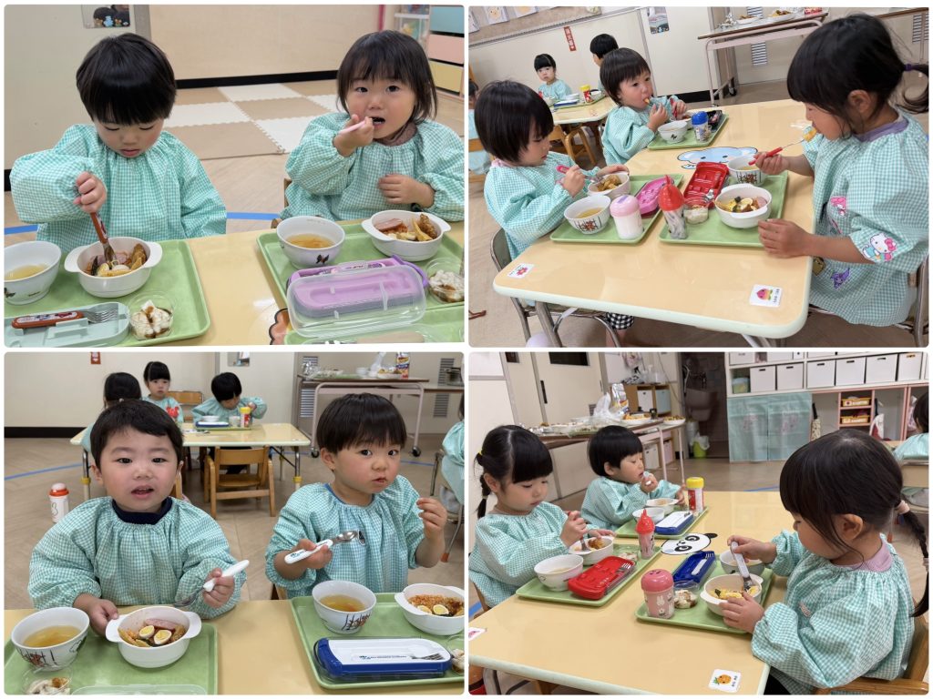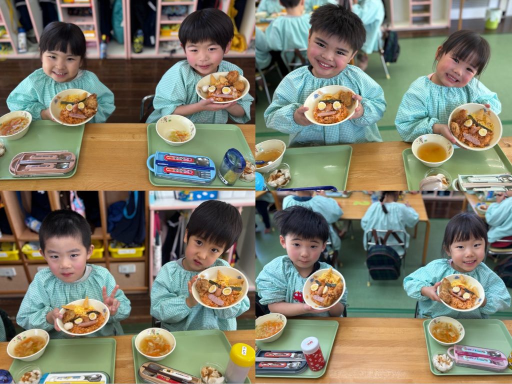 鬼退治の後はみんな赤鬼ライスです。元気もりもりで鬼を食べていました。頑張って退治したんだね。