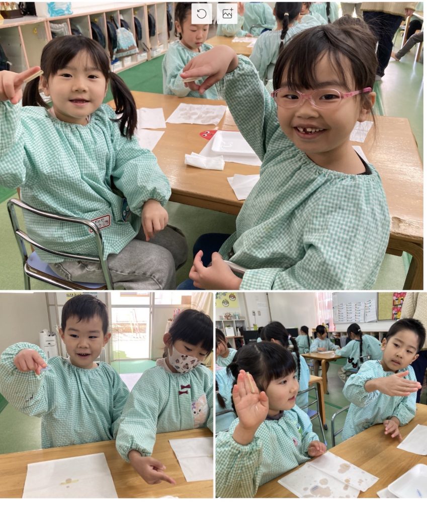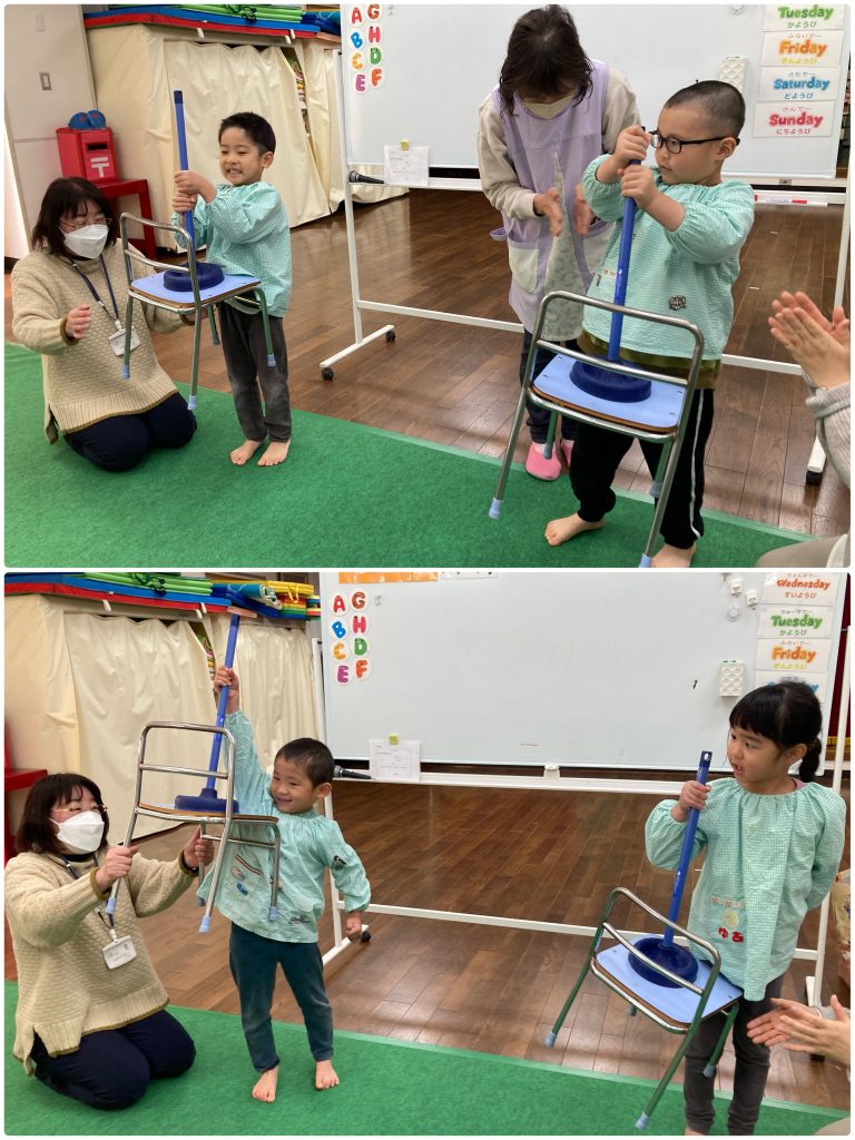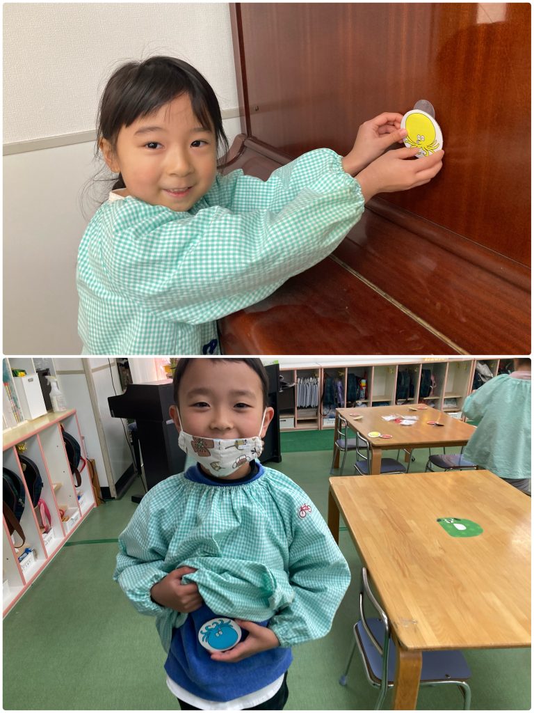 先日、まつ組が科学の時間で「くっつくもので遊ぼう」をテーマに「くっつく」の仕組みを体験しました。水をつけた指にストローがくっついたり、紙コップを吸い込んで顔にくっついたり実際に体験しました。スッポンを椅子に吸い付けると、椅子を持ち上げることもできました。色が違うタコのカードには裏に吸盤や、磁石などがついていて、みんなでくっつく場所を探しました🧲くっつくって不思議だね😌