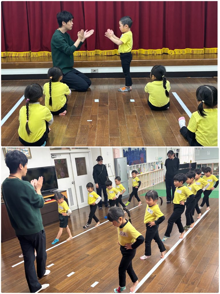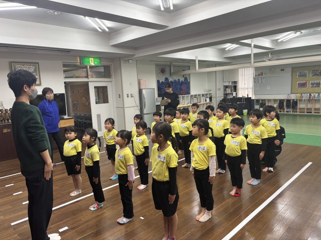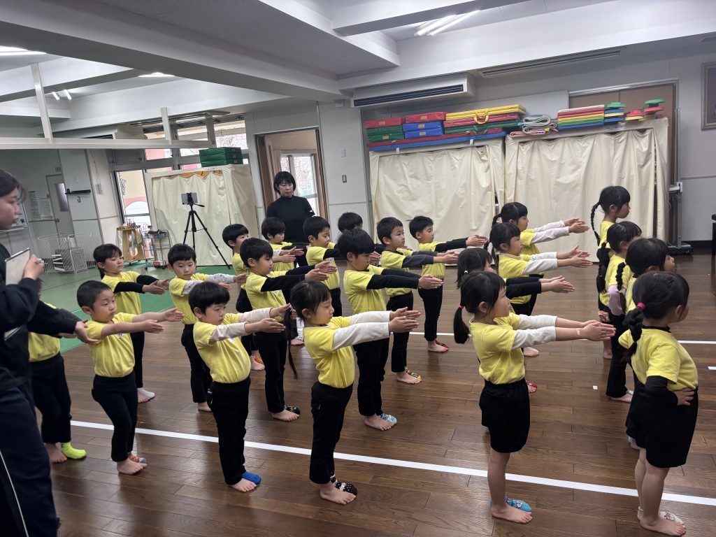 4月からまつ組に進級するたんぽぽ組が、ガード・ダブルの練習開始です。初白幡先生と顔合わせです。みんなドドドド緊張‼️声も小さく目が点でしたが、白幡先生が優しいとわかったら声も大きくなり、動きもスムーズになりました。「まわれ・右」「左向け左」等、号令を聞いて、頭で考えて動く、慣れてくれば簡単❣️一つひとつ積み重ねて自信をつけていきましょう。