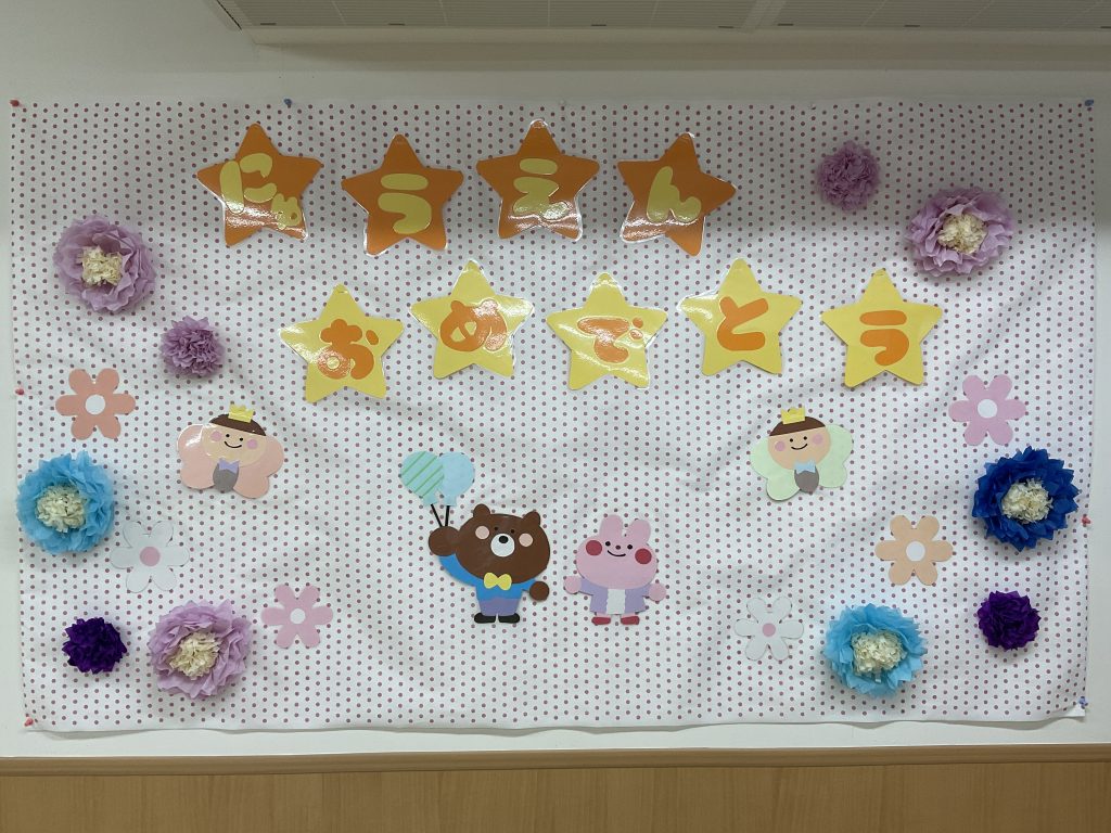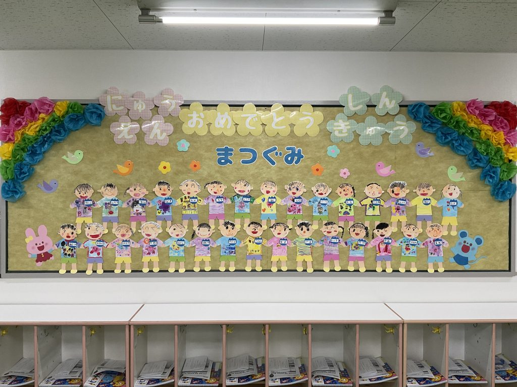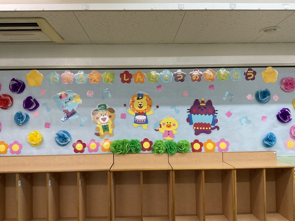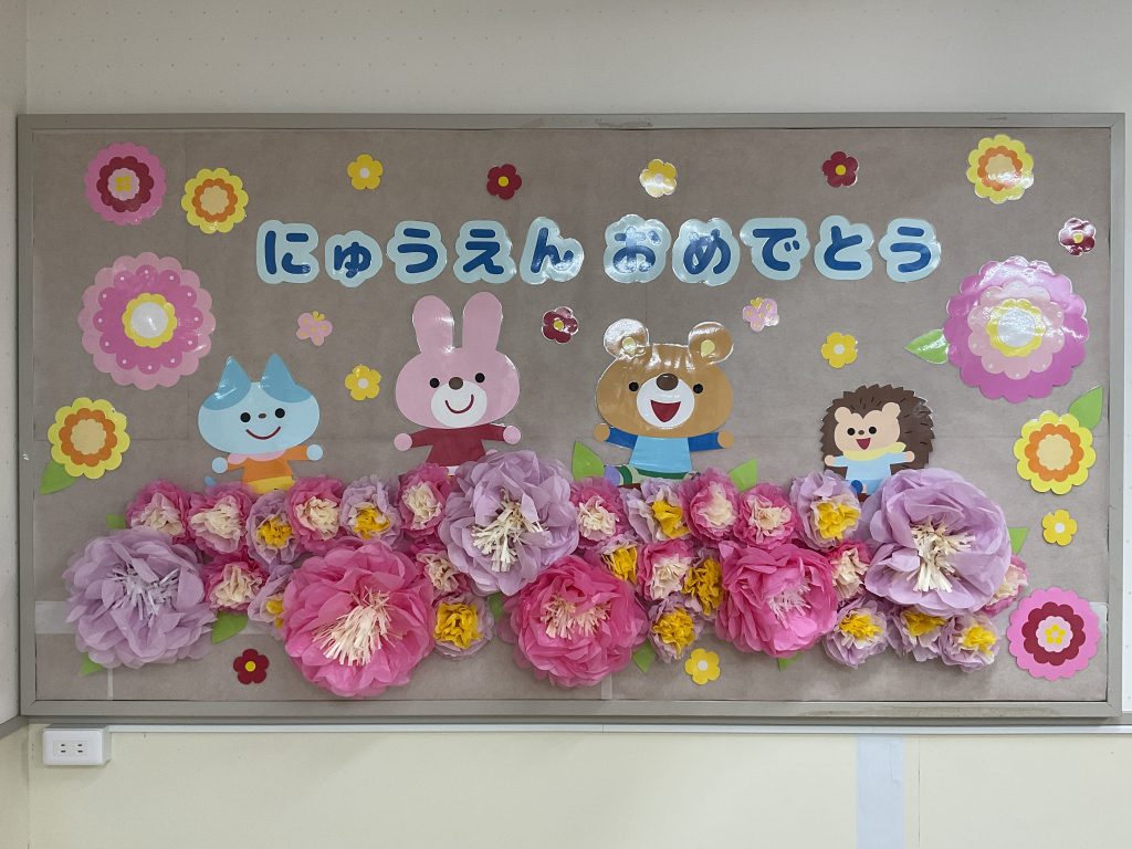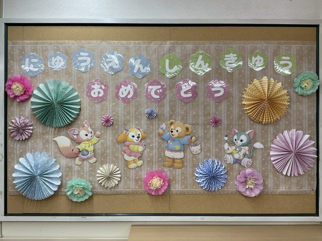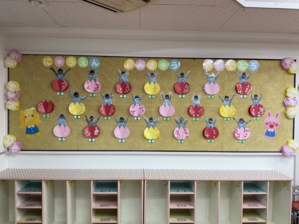 明日は入園式です。今年は園庭の桜も満開になりました。入園式はまつ親子と新入児親子が参加です、先生たちは教室をきれいにして、ワクワクしています。3歳以上児のクラスは4月からのクラスを楽しみに壁面を製作しました。1年間新しい教室・新しい先生と笑顔で元気にたくさんのことにチャレンジして認定こども園大宮聖愛保育園で過ごしましょう、保護者の皆様よろしくお願いいたします。