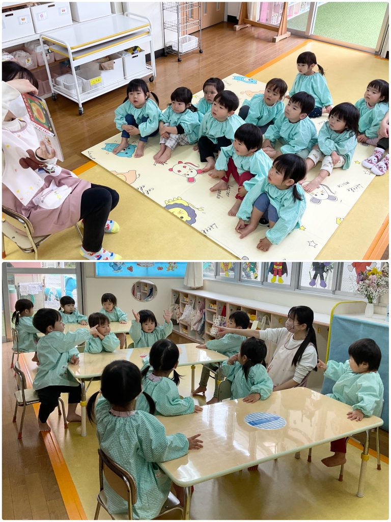 今日は生憎の雨の登降園になってしまいました。新入児の慣れていないお友達もみんなと一緒に過ごせました。登園時にママから離れる時にちょっぴり寂しくなりますが、きっとお友達と先生と一緒に過ごす時間が楽しくなりますよ!保育園は楽しいところ明日も元気に登園待っています。
