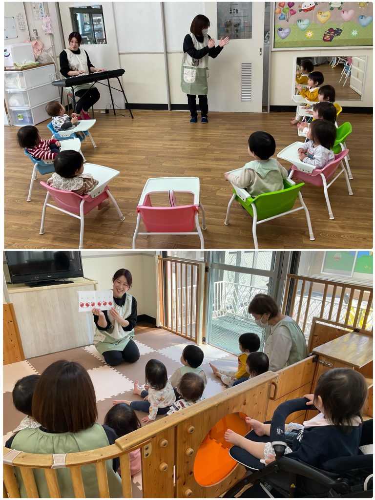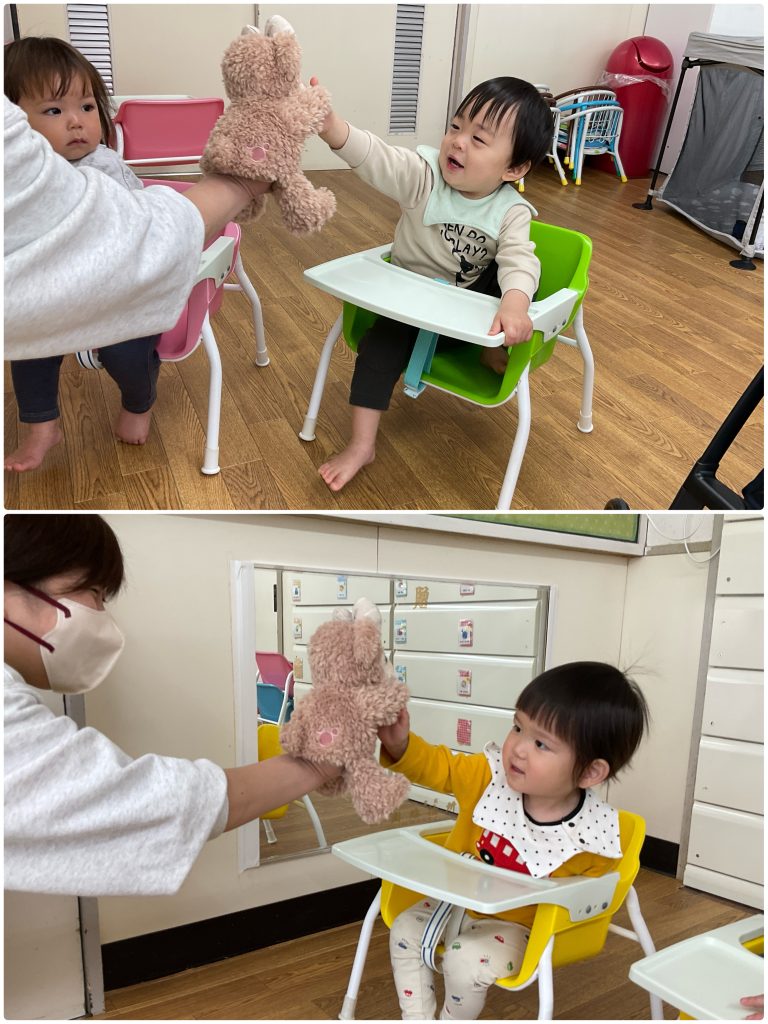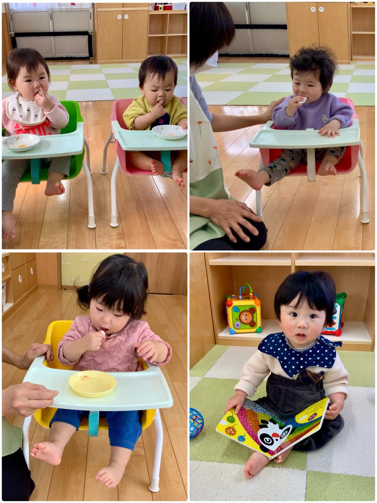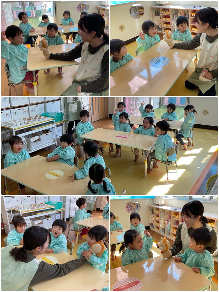 小さいクラスも、今日もママ・パパと登園🚗頑張っています!先生とお友達と、朝の会から絵本・出席点呼・お歌を歌って楽しく過ごしました。おやつも小豆パンと牛乳です。みんなといると楽しくなっちゃいます。お家を思い出したら、運動場へでて気分転換も❤️先生の色んな工夫で楽しく過ごしました。