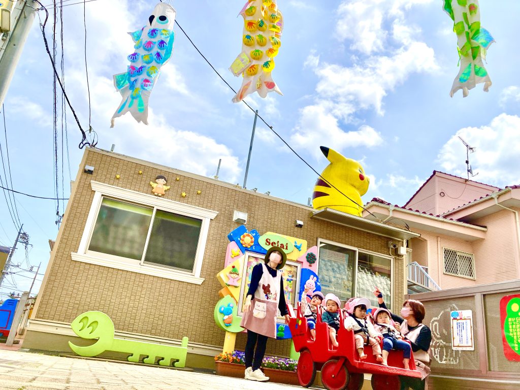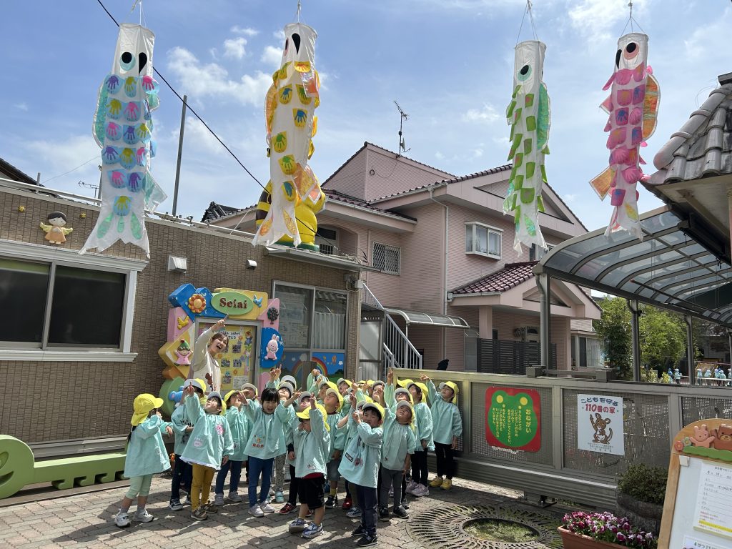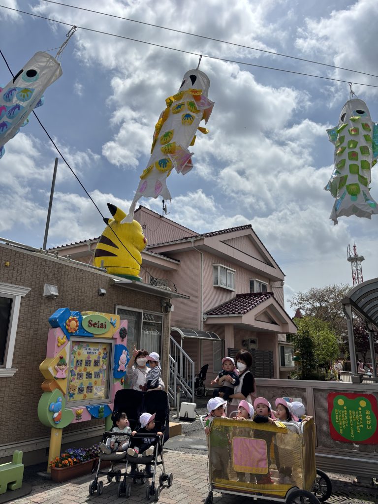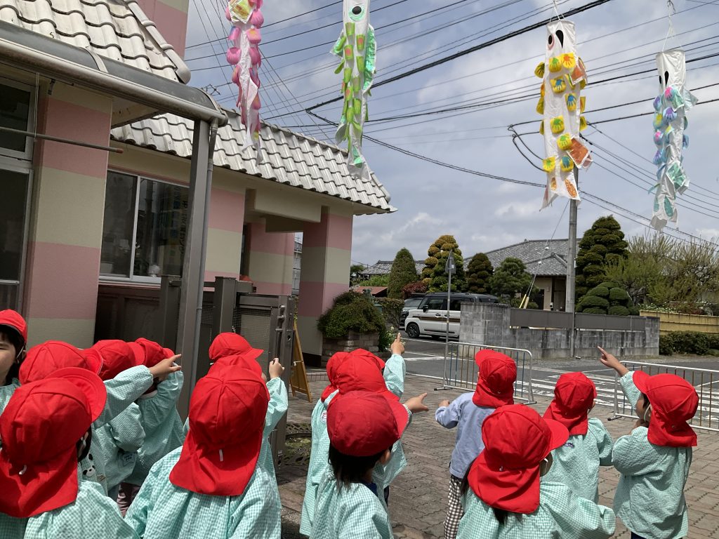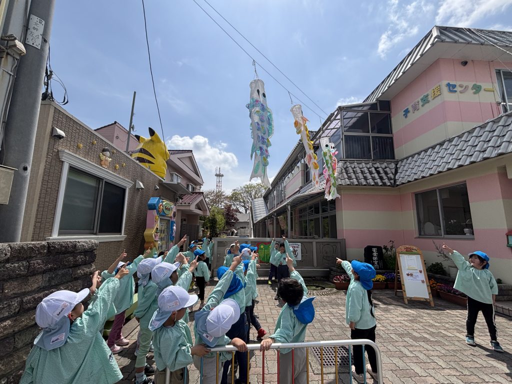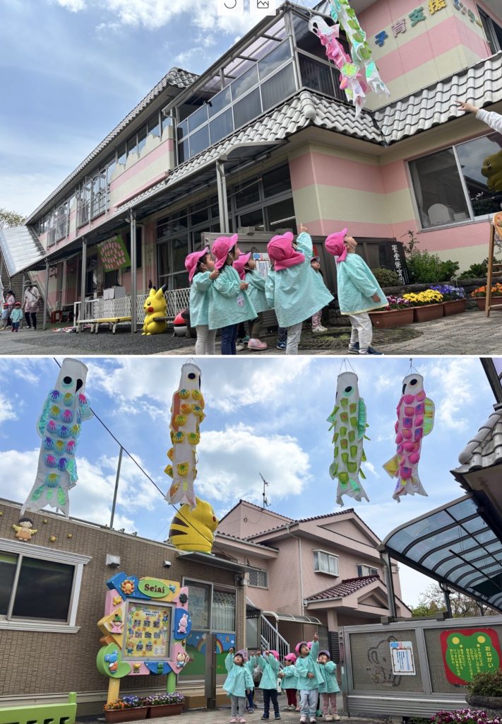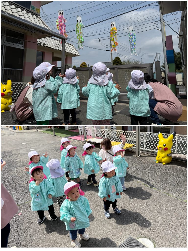 手型で作った鯉のぼりが月曜日からあがりました。大きいクラスは自分の手形を見つけて大喜び、みんな空を元気に泳ぐ鯉のぼりのようにのびのび元気に大きく育ってね🎏登降園時の空を見上げてみてくださいね、