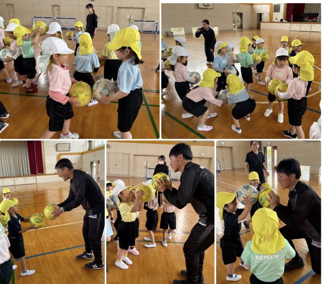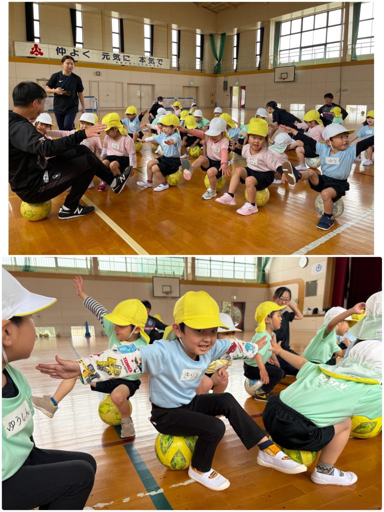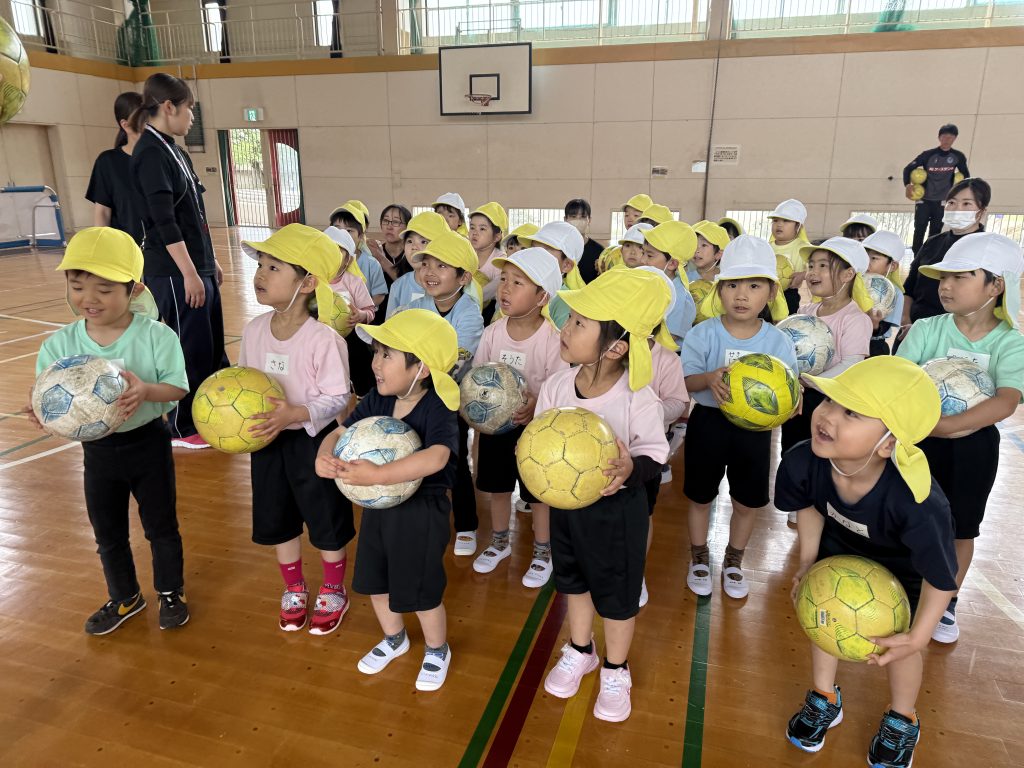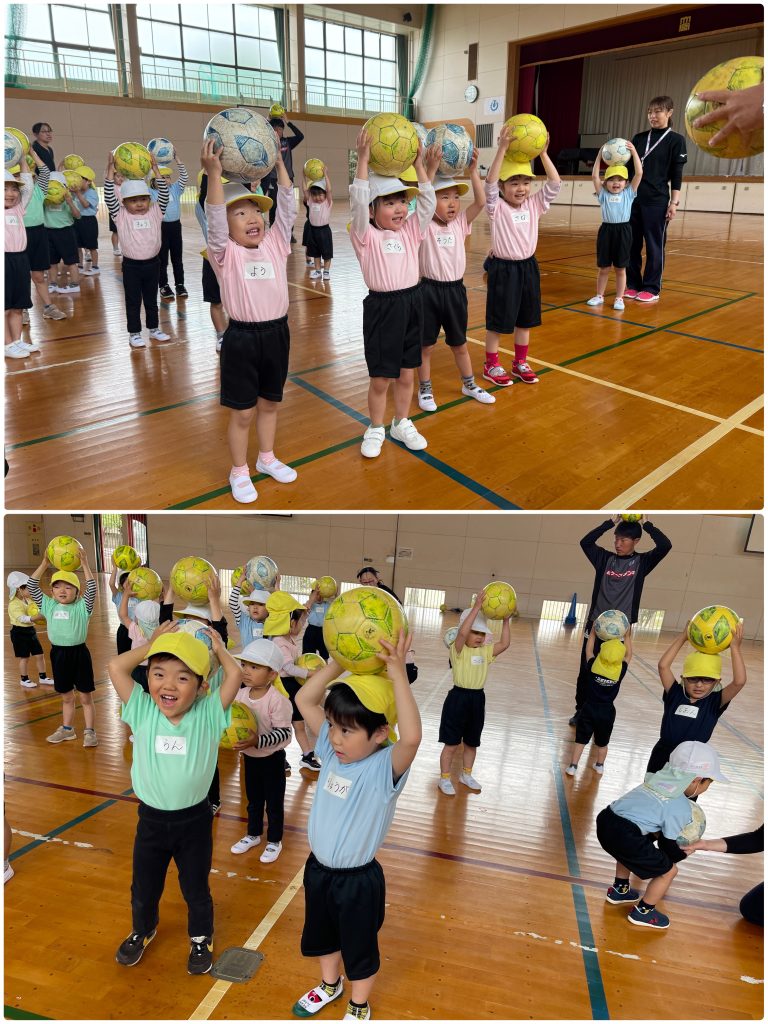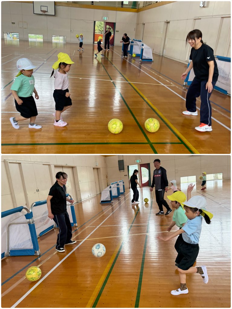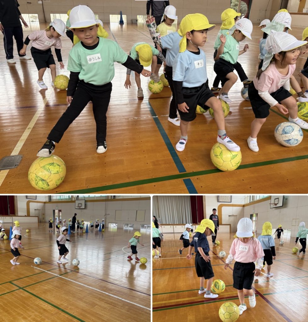 木曜日にたんぽぽ組が大宮小学校まで歩いて行き、水戸ホーリーホックサッカー教室を行いました。ホーリーホックのコーチのお話を聞いて始めます。サッカーボールとまずは仲良しになります。足で蹴ったり、ボールを止めたり、バランスをとりながら転んだりぶつからないように、動いて行きます。次回からは、聖慈保育園のたんぽぽ組と合同で行います。お楽しみに⚽️