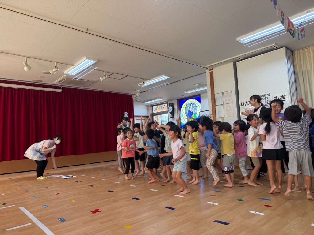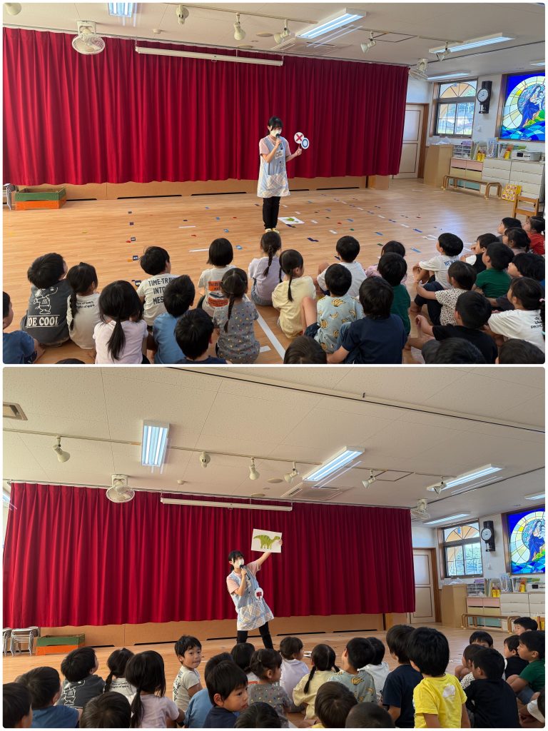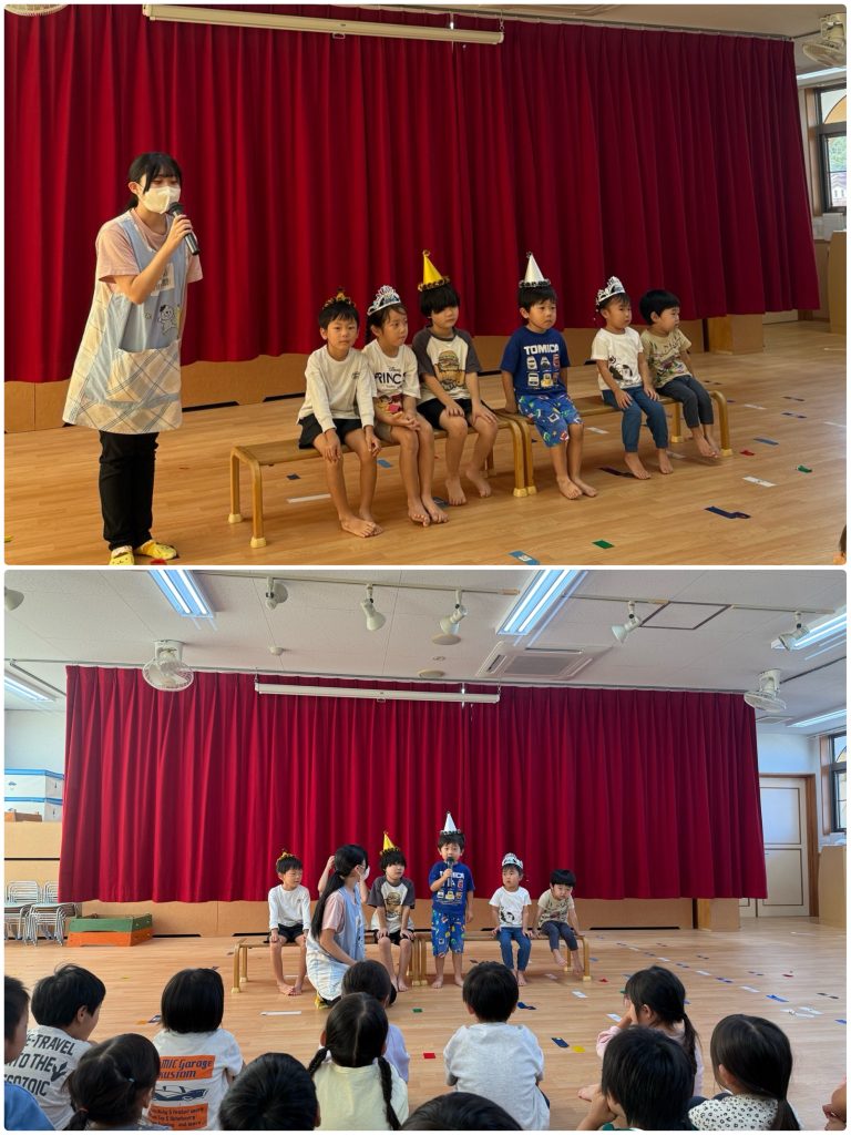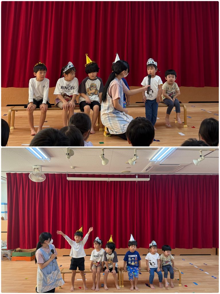 お誕生会では、名前、何歳になるのか、お誕生日に欲しい物などを大きな声で発表してくれました。シルバニアファミリーのおもちゃや、ジョブレイバーが欲しいです。と教えてくれました😊お誕生日おめでとう🎂第2部は⭕️❌クイズを行いました。「恐竜は今も生きている」「アンパンマンの中身はこしあん」など子どもたちはすごく楽しみながら参加できました。最後はアンパンマンの歌をみんなで歌って、踊りました😊