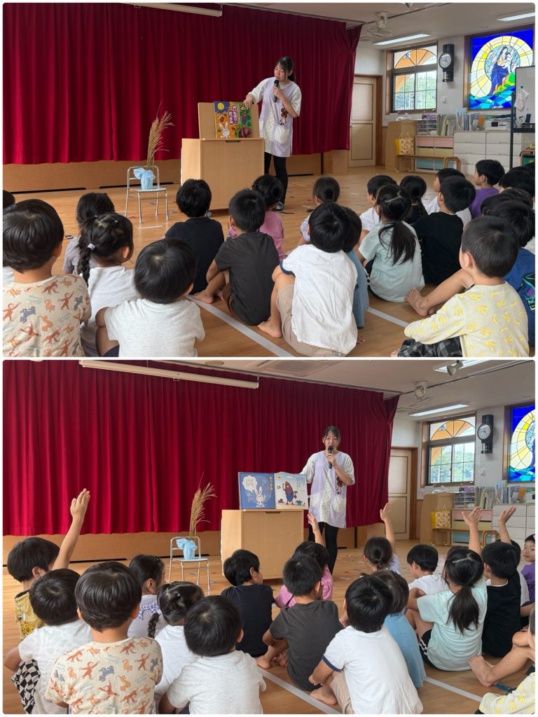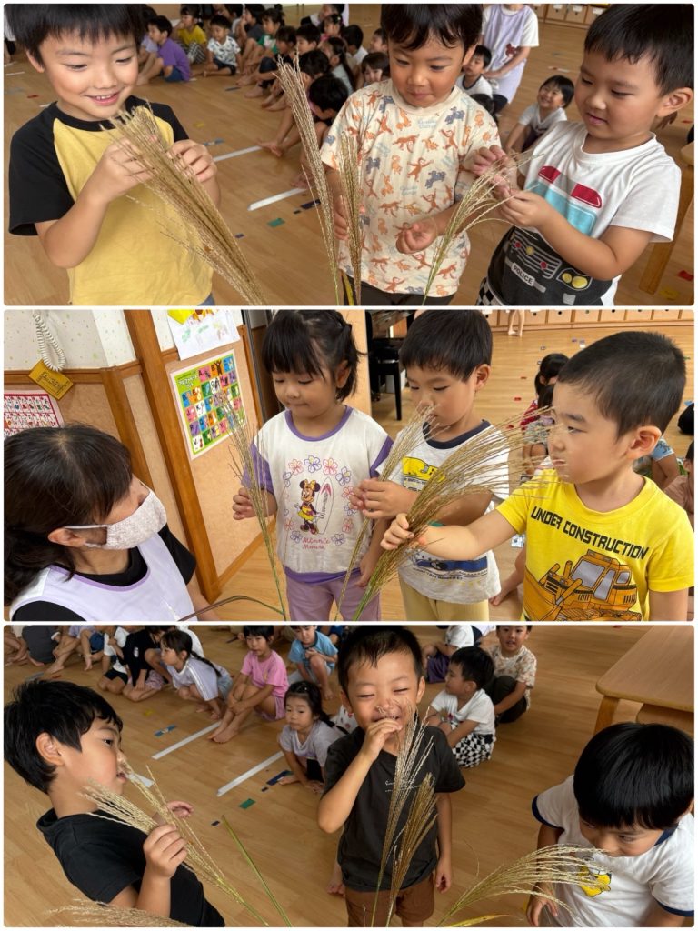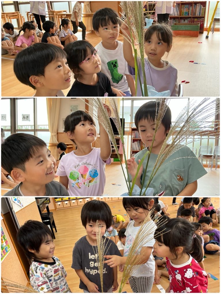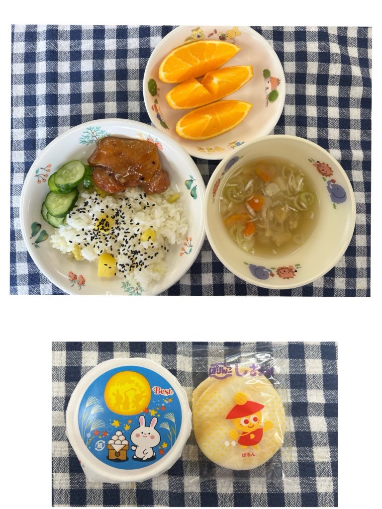 今日は中秋の名月ですね。十五夜とも呼ばれ、1年の中で1番きれいな月が見える日です。保育園でも大型絵本を見ながらお月見の話を聞きました。本物のススキを飾り、実際に触ったり、匂いを嗅いでいる子もいました🎑お団子や、ススキ、芋などのお供えは、秋の豊作に感謝したり、これからも美味しい食べ物が食べられますように🙏という願いを込めているそうです。別名「芋名月」と呼ばれるので、給食もさつまいもご飯や、里芋のみそ汁を食べました。