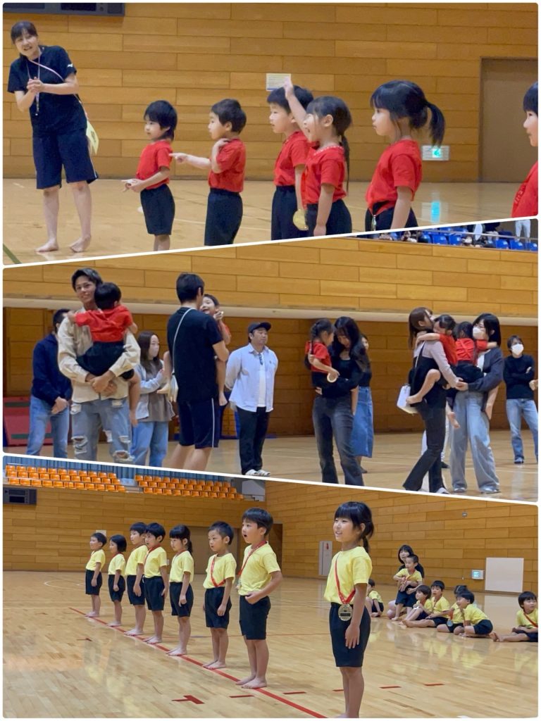 園長先生からもたくさん褒めていただき、最後は保護者に向かって走るハグかけっこです😊保護者の呼ぶ声に嬉しそうに返事をして、走り出す子どもたち🏃みんな本番が1番頑張って、発表することができました☺️お家でもたくさん褒めて、抱きしめてくださいね😊たくさんのご協力ありがとうございました