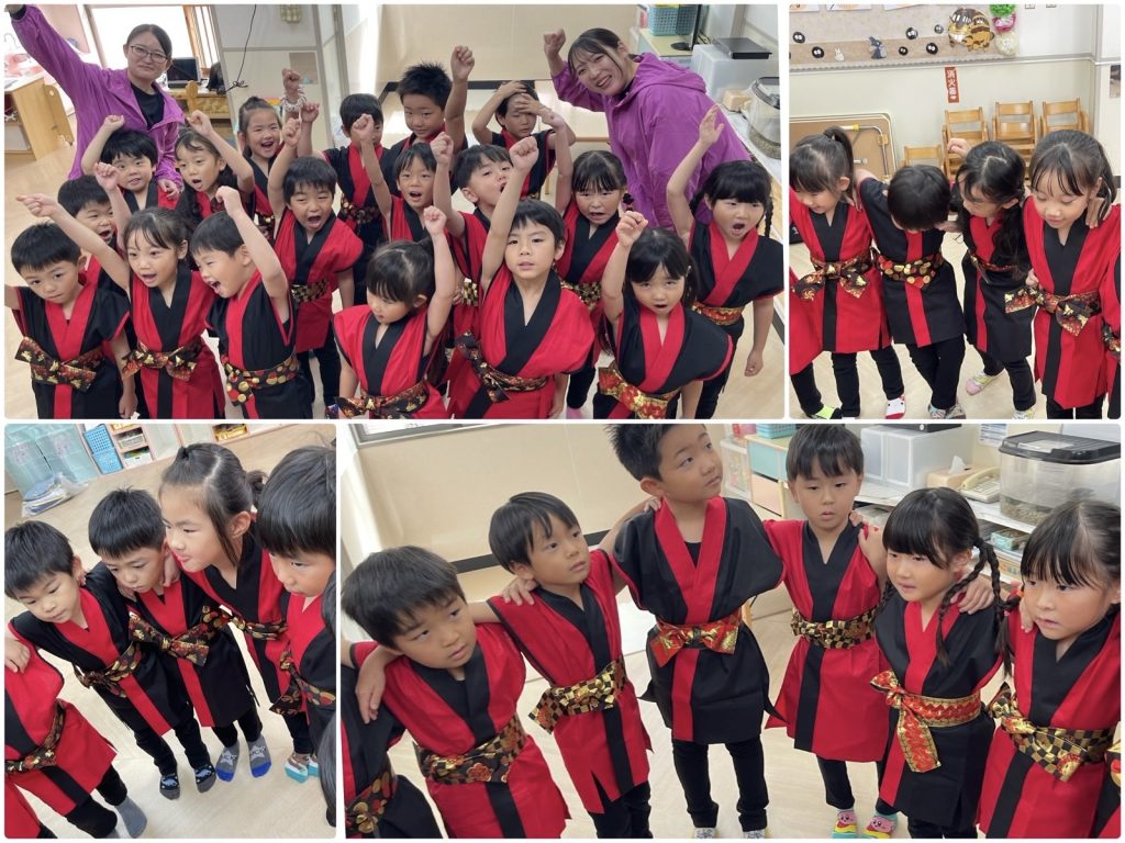 11月3日西部運動公園でふれあい広場開催、聖慈・聖愛のまつ組が合同で出場しました。今年から衣装も新しくなりました。保育園の代表として沢山のお客さんの前で頑張りました。保護者の皆さんご協力ありがとうございました。先生たちもかっこよかったね