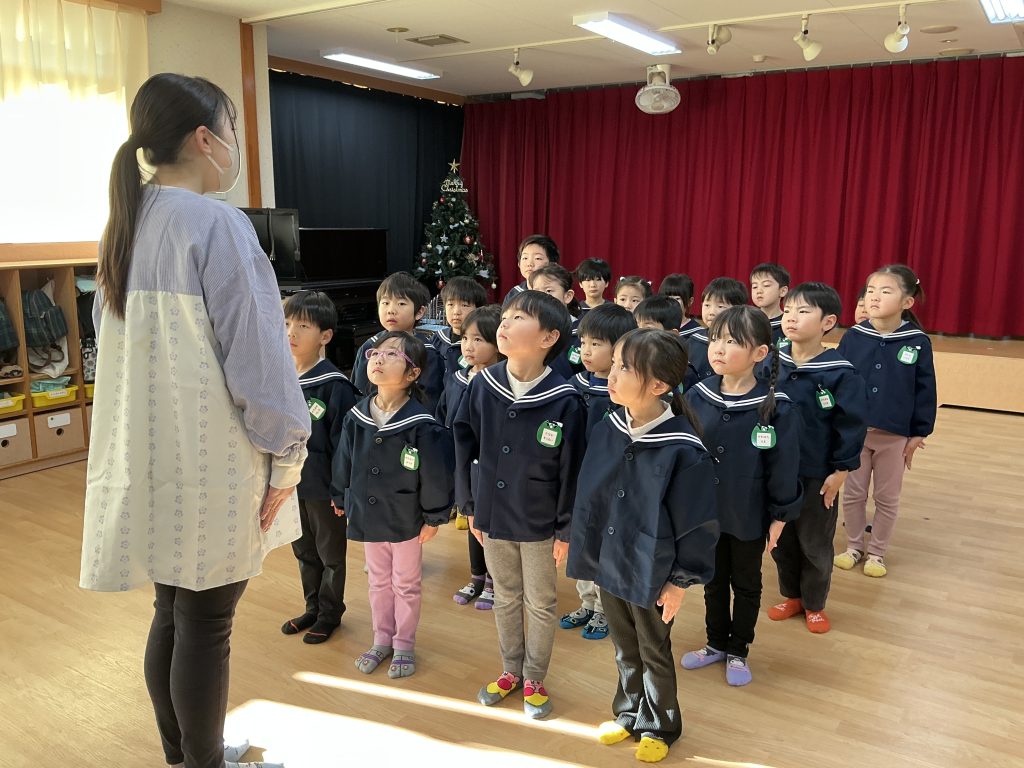 明日はいよいよクリスマス発表会本番です!「明日はパパとママが見に来てくれるんだ!」「終わったらご褒美買ってもらうんだ!」と嬉しそうにお話ししてくれました。毎日たくさん練習をしてきた子どもたちは、衣装を着て発表することを楽しみにしています。一生懸命発表する子どもたちをいっぱい応援して下さい!