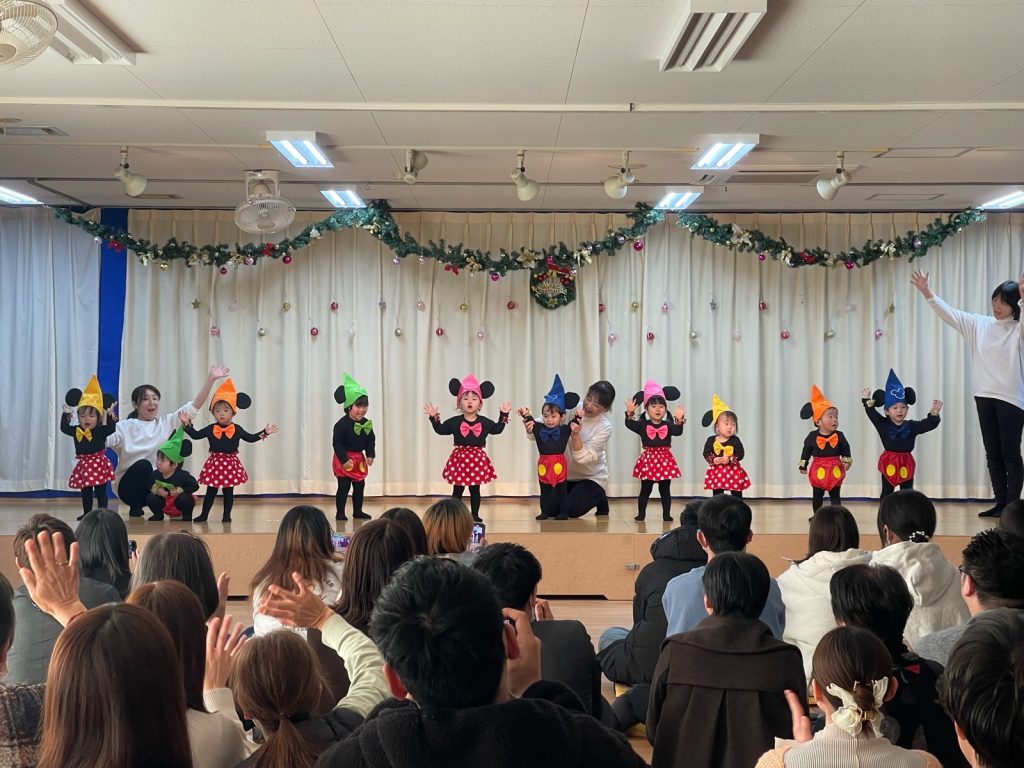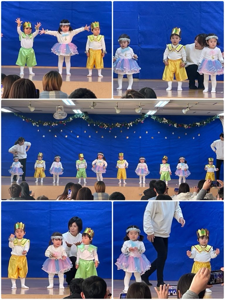 ばら組も全員参加でクリスマス発表会を行うことができました😊教室が変わるだけでもドキドキしてしまう月齢の子たちですが、みんな可愛い衣装を着て、頑張ってステージに立つことができました😆保護者の方たちも「かわいい〜❣️」と喜んでくださいました☺️