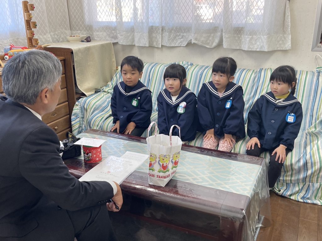 今年最後のホーリーホック教室をまつ組・たんぽぽ組が行いました⚽️サッカーのルールも覚えてきたので、ミニゲームもみんな楽しく参加することができました。ホーリーホックの皆さんありがとうございました😊大宮聖愛保育園・聖慈保育園の皆さんのご協力いただいた「愛の募金」を、茨城新聞社の方に寄託いたしました。皆さんご協力ありがとうございました。