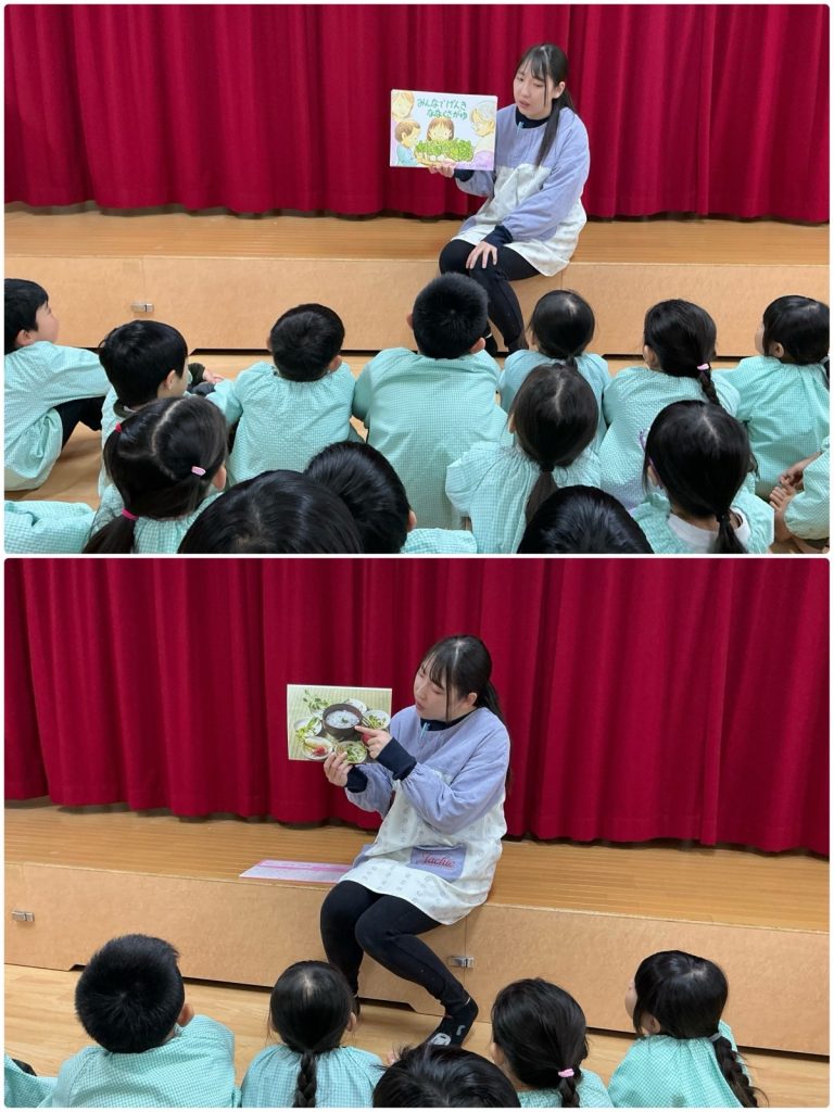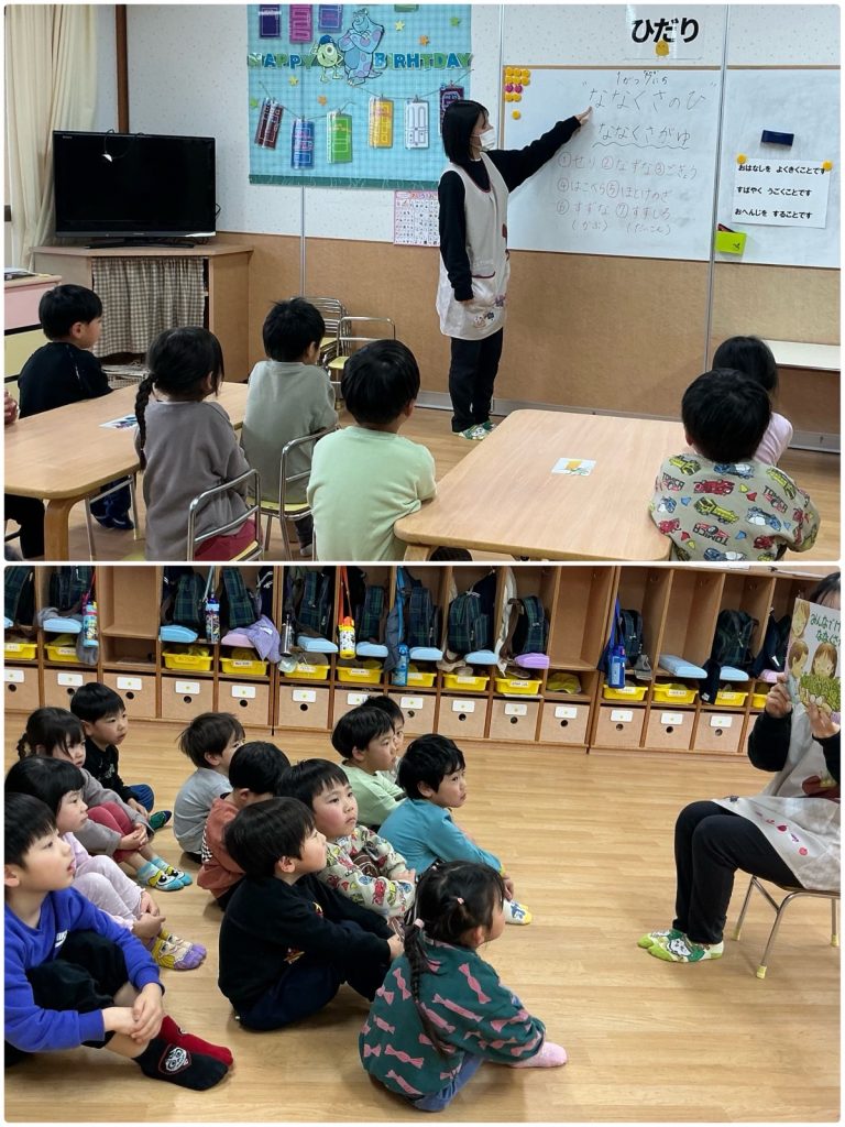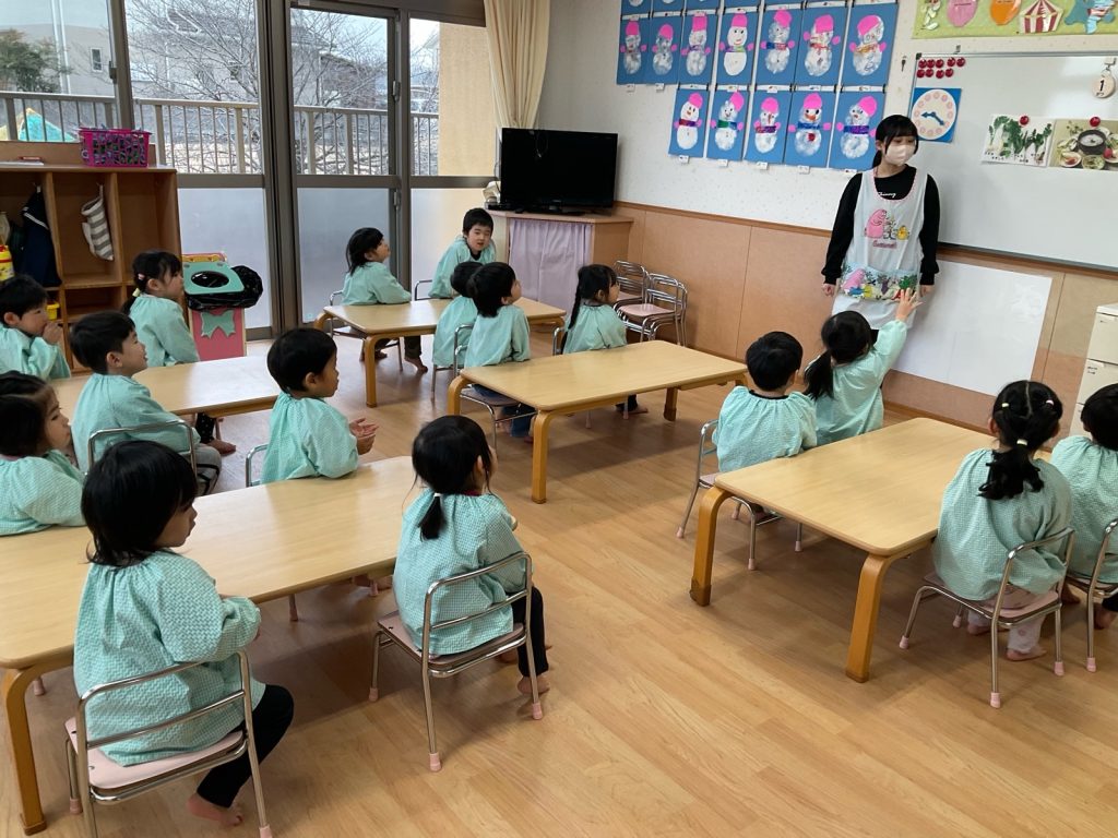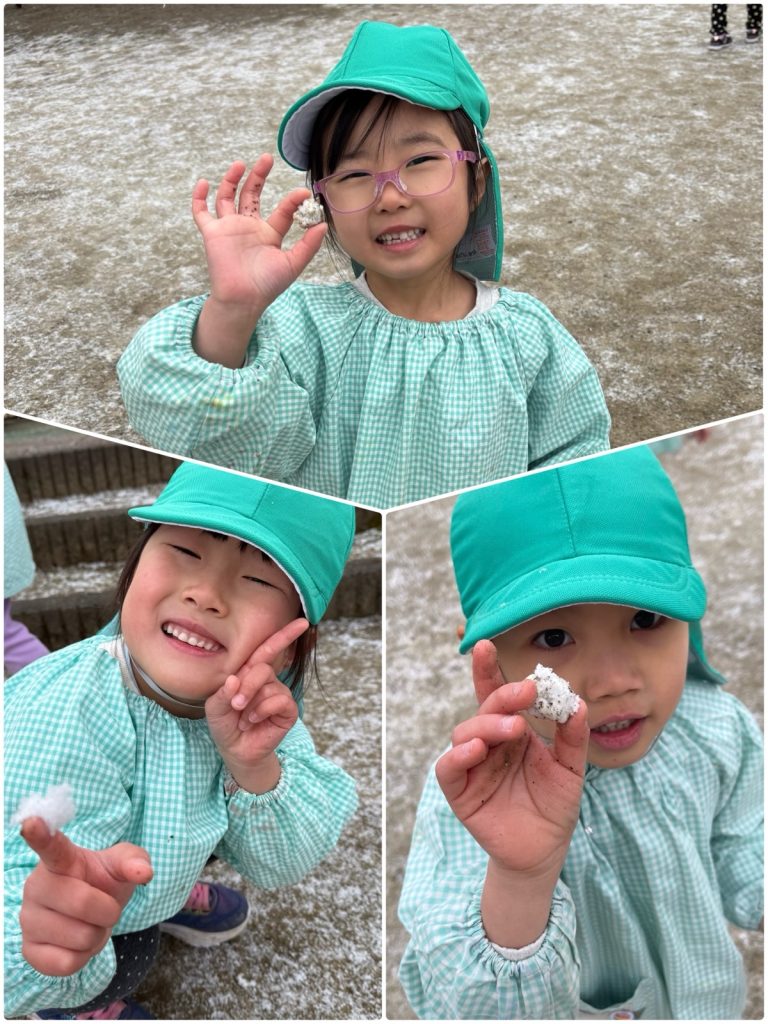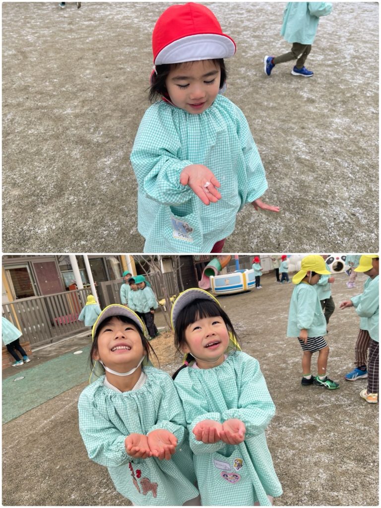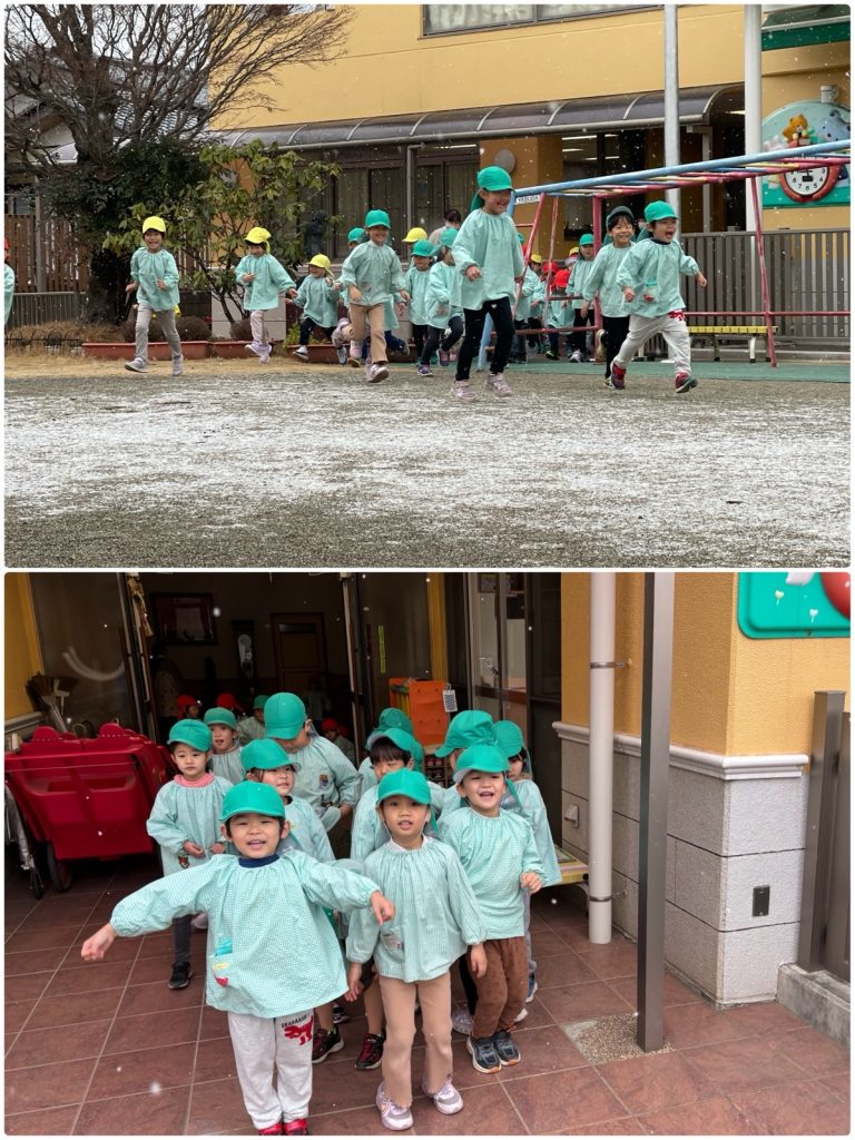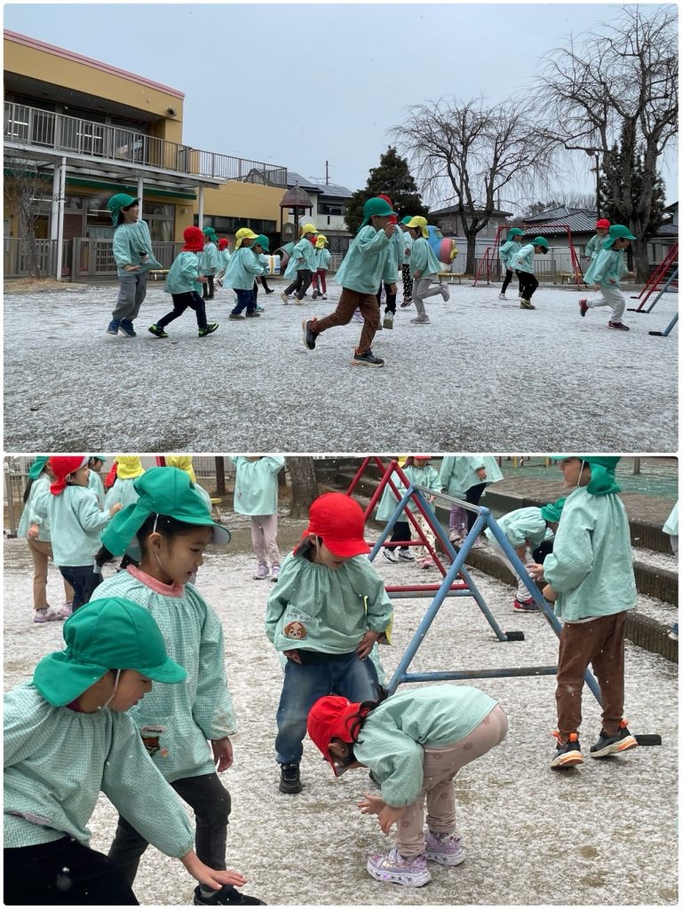 月7日は「春の七草」と呼ばれる7種類の野草を入れたお粥で、無病息災を願って食べられています。クラスごとにどんな野草が入っているのか、紙芝居を見ました。「せり・なずな・ごぎょう・はこべら・ほとけのざ・すずな・すずしろ」みんなで一緒に言って、呪文のように繰り返す子もいました😊朝チラチラ降る雪を見ながら、「雪積もればいいのに」「雪遊びしたい」と元気に運動場に出た子どもたち❄️ちょっとだけ積もった雪を一生懸命集めて、「見て〜」と嬉しそうに見せてくれました😆雪遊びとまではいきませんでしたが、大喜びの子どもたちでした⛄️