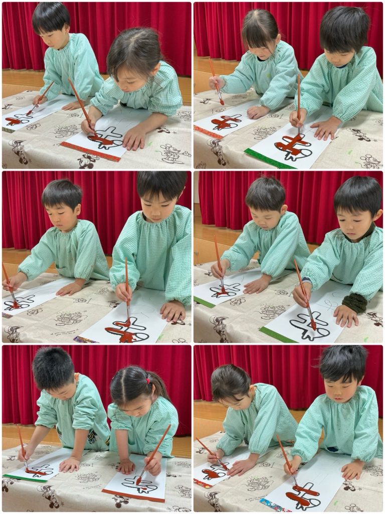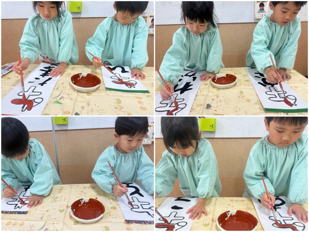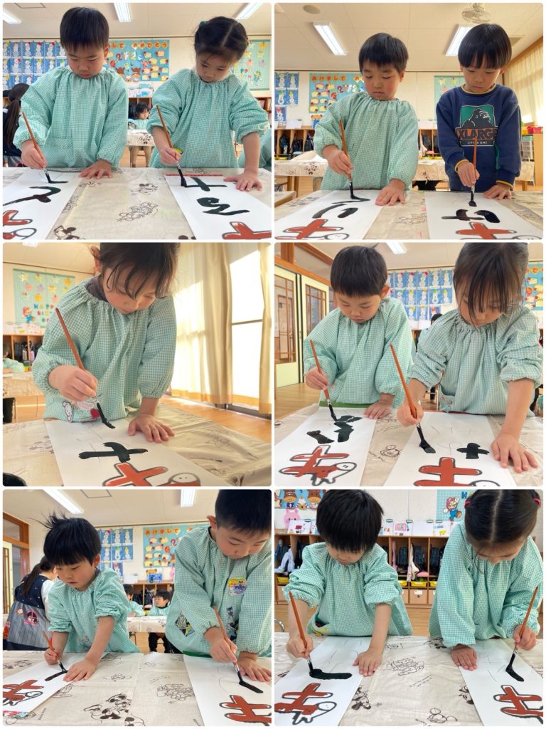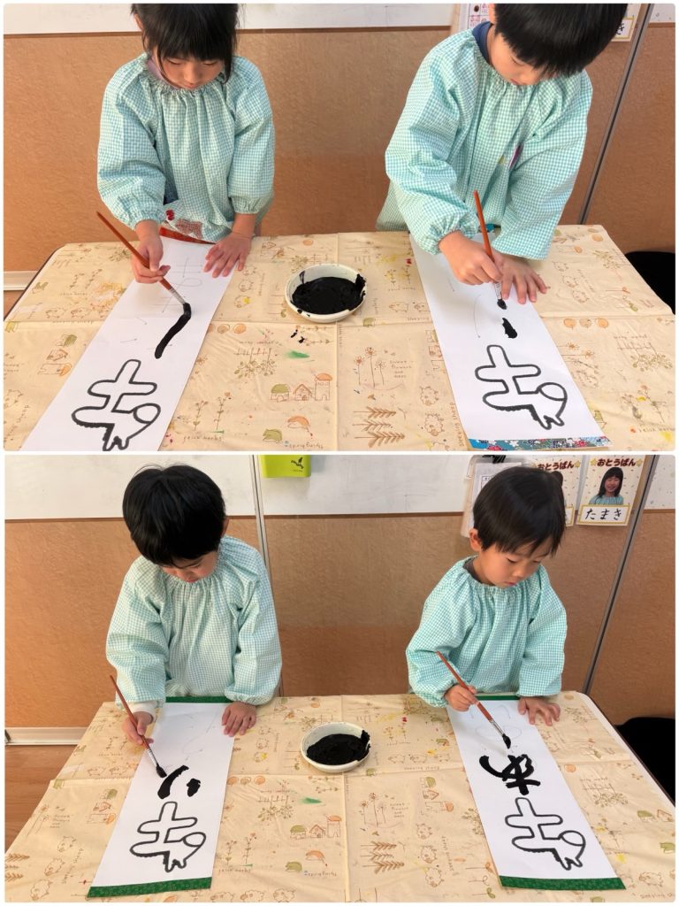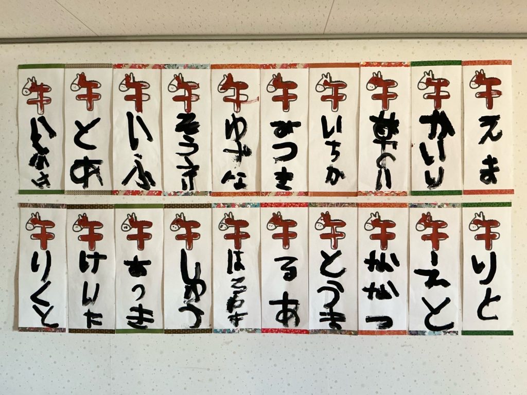 今年の干支は『馬』です。書き初めで「午」と自分の名前を書きました。集中して書くことで、心を落ち着かせ、新年の気持ちを引き締めます。書き初めは、昔から「字が上手になるように」と願いを込めて行われてきました。みんなも丁寧に文字を書くようにしましょうね🖌️