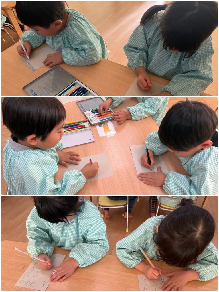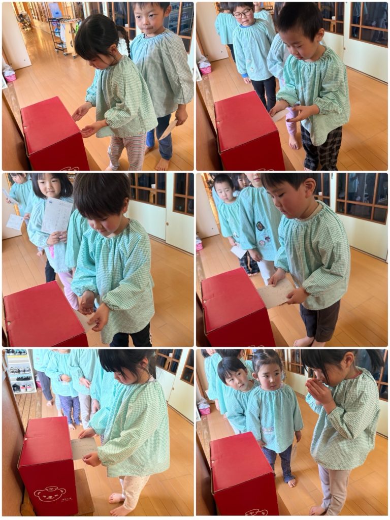 ちゅうりっぷ組・たんぽぽ組・まつ組がゆうびんやさんごっこを始めました。ちゅうりっぷ組、たんぽぽ組は絵を描いたり、字が書ける子は書きました✏️まつ組は一文字ずつ丁寧に書いていました。切手スタンプを押して、ポストに入れました📮お友だちからの手紙を持ち帰ります。今度は誰に出そうかな!?