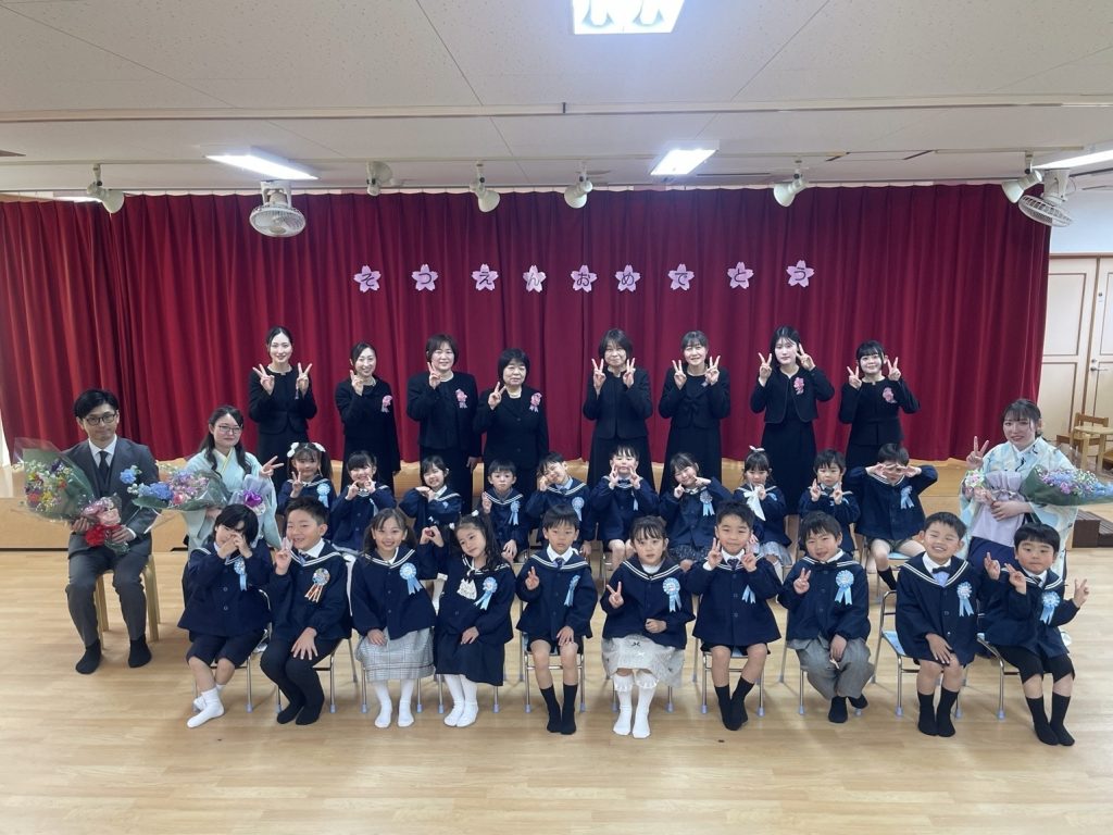 卒園生の20名全員が、お父さん・お母さんたちと元気に登園してくれました😊少し緊張しているお友だちもいましたが、子どもたちの事を思いながら保護者の方が作ってくれたコサージュを胸に付け、みんな堂々と入場してくれました。先生からの呼名に大きな声で返事をしてくれる子どもたち。歌を歌いながら思い出す保育園の思い出に保護者・卒園生・先生たちも涙してしまいました。保育年数は違いますが、一人ひとりの保育園で頑張ったことや、成長は先生たちみんなが覚えています。保護者の方々から心のこもったプレゼント・お礼の言葉をいただきました。保護者の方々たくさんのご協力ありがとうございました😌笑顔で元気にチャレンジする小学生になってね❣️聖慈保育園から応援しています‼️卒園おめでとうございます🌸
