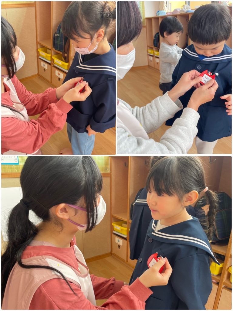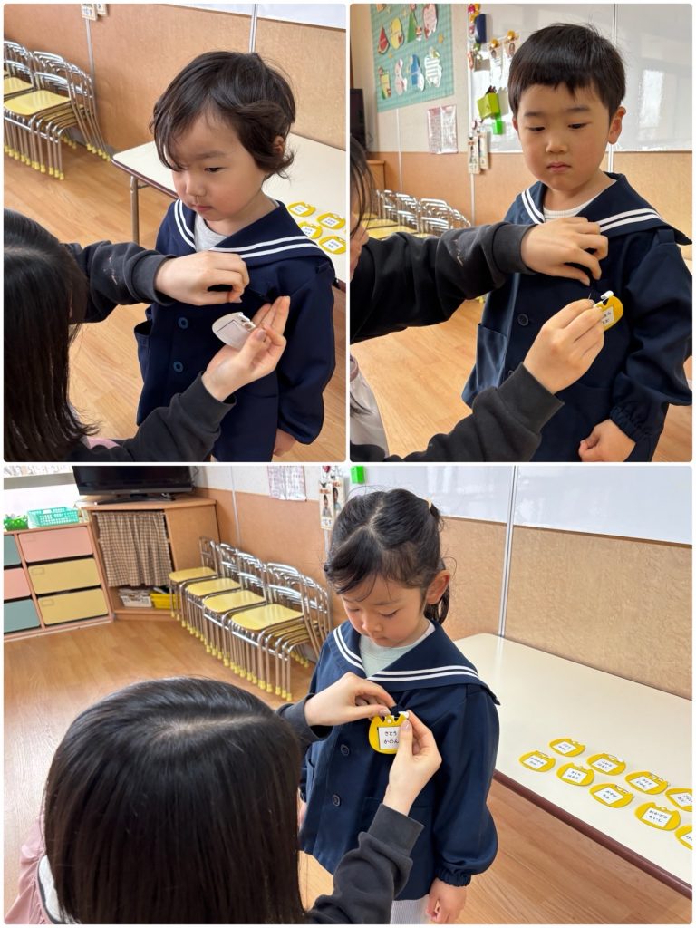 朝から元気な声で挨拶をして登園してくれたお友だち😊今日から新しいクラスで保育がスタートしました。先生から新しいネームをつけてもらい、嬉しそうです☺️ばら組・ふじ組の新しいお友だちもおままごとや、ブロックで遊ぶことができました😊これから1年間楽しく過ごそうね。明日も待ってるよ🖐️